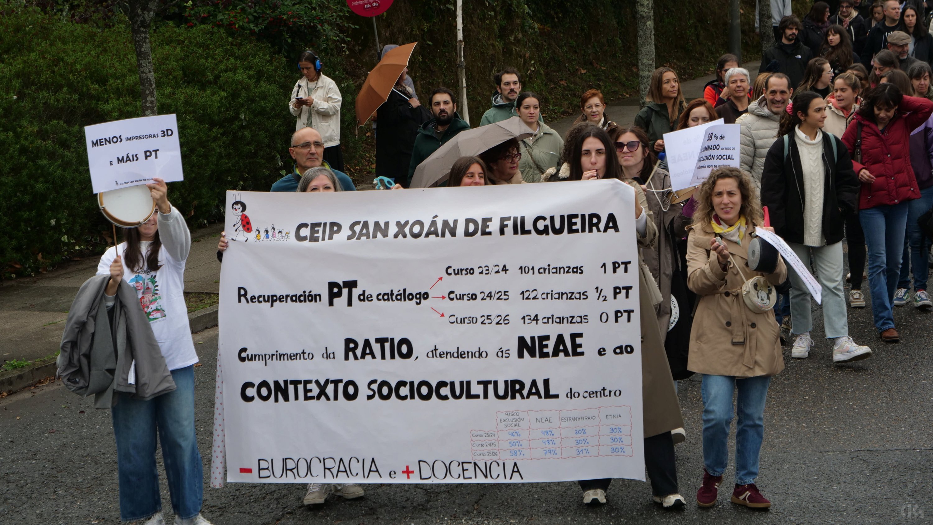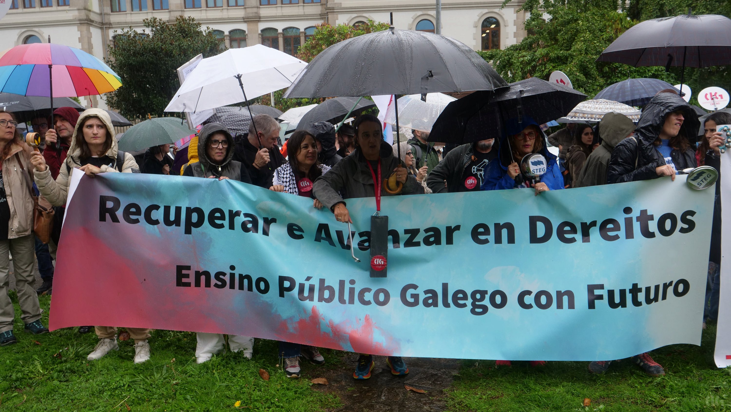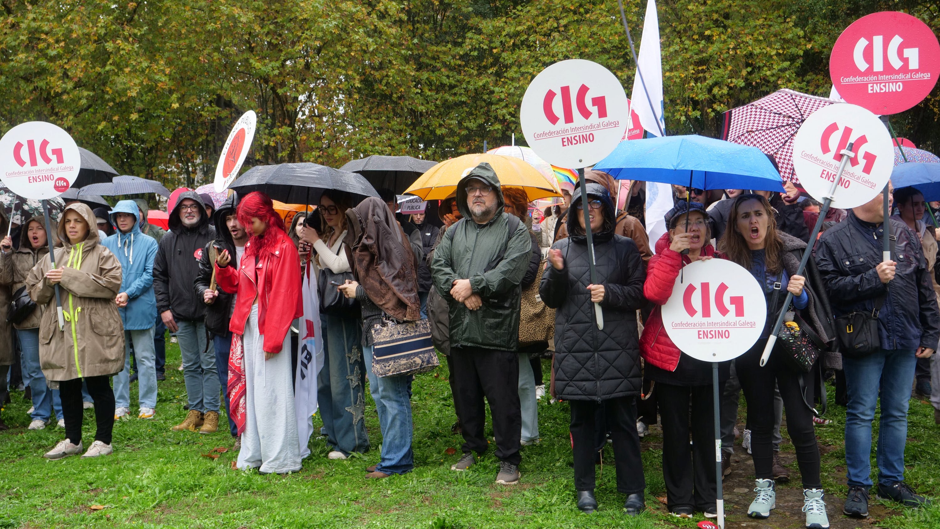 En declaracións aos medios a secretaria nacional da CIG-Ensino, indicou que a asistencia á manifestación desta mañá volveu superar todas as previsións malia a choiva. Durante a mesma o profesorado asistente portou cabazas que foron depositadas diante do edificio da Xunta e protagonizou unha sonora protesta rodeando San Caetano para facer oír as súas demandas.
