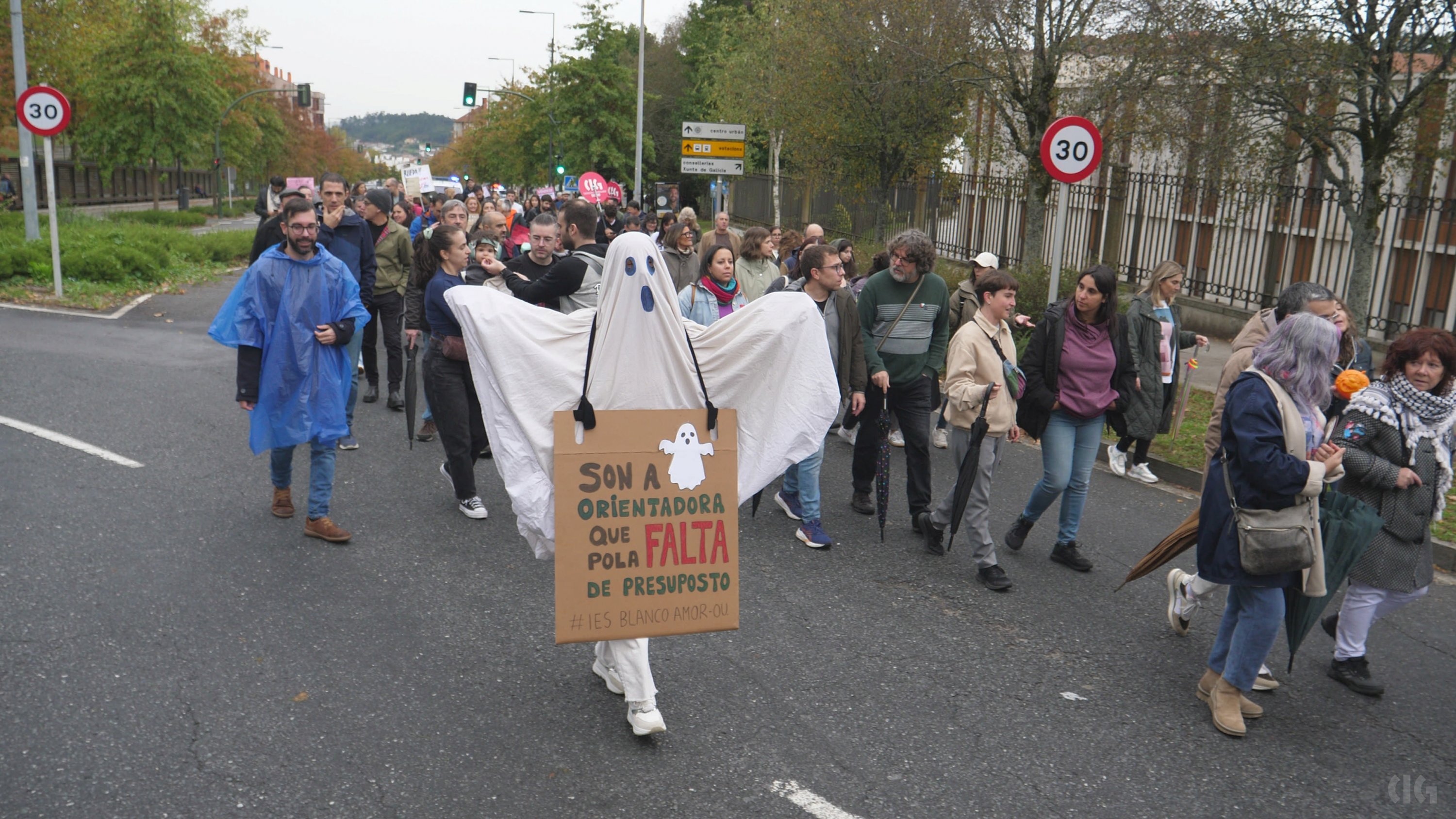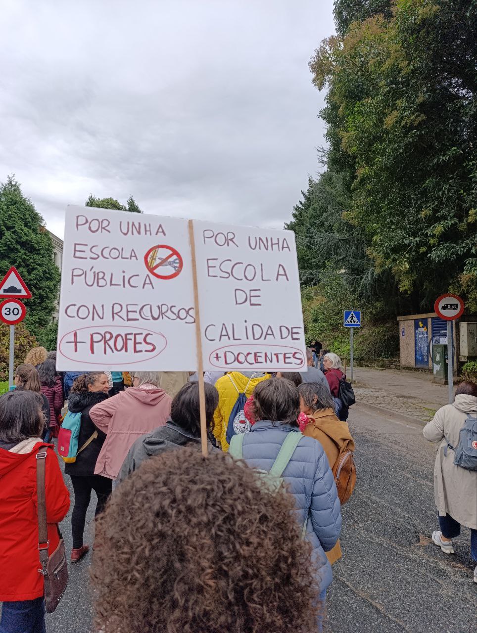 Ademais referiuse ás vésperas do Samaín, “unha data que na nosa cultura significa unha unión entre o mundo dos vivos e o dos mortos. Sabemos onde lle gustaría situar ao Partido Popular o ensino público pero tamén sabemos o que queren o profesorado, o alumnado e as familias: un ensino público vivo, de calidade, galego e integrador. Polo tanto seguiremos visibilizando a fartura do profesorado estes dous días e a partir do xoves nos nosos centros de traballo porque a responsabilidade docente é construír unha sociedade integradora e plural”.