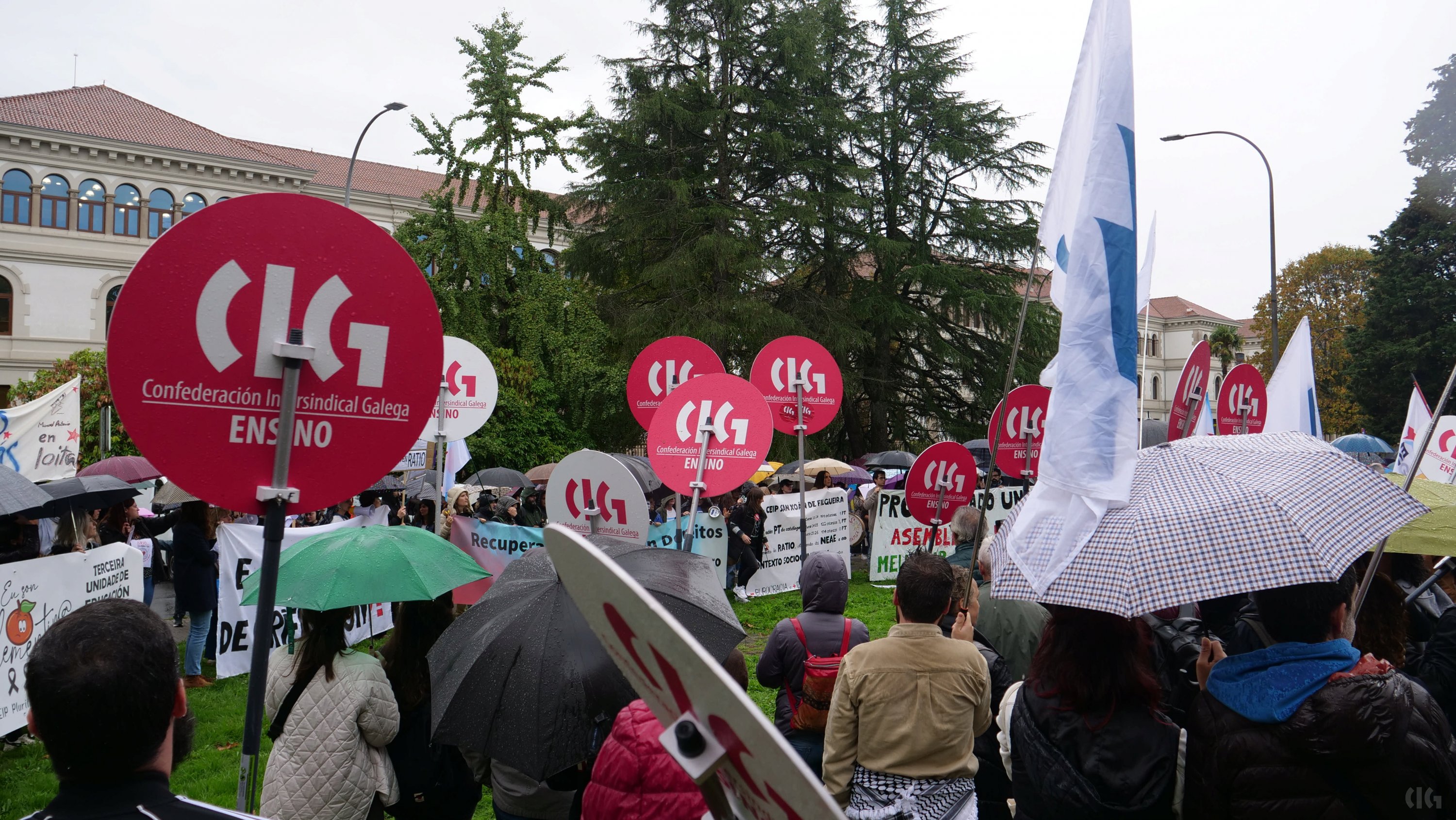 Ademais esta tarde-noite levaranse a cabo peches reivindicativos en varios centros das cidades da Coruña, Lugo, Ourense, Pontevedra e Ferrol e en Moaña