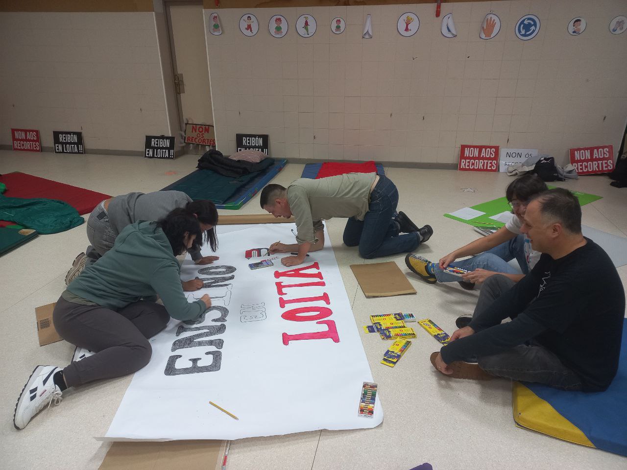 Máis dun cento de docentes pecháronse en cinco centros de Galiza durante a noite para reclamar que a Consellaría atenda as demandas do profesorado