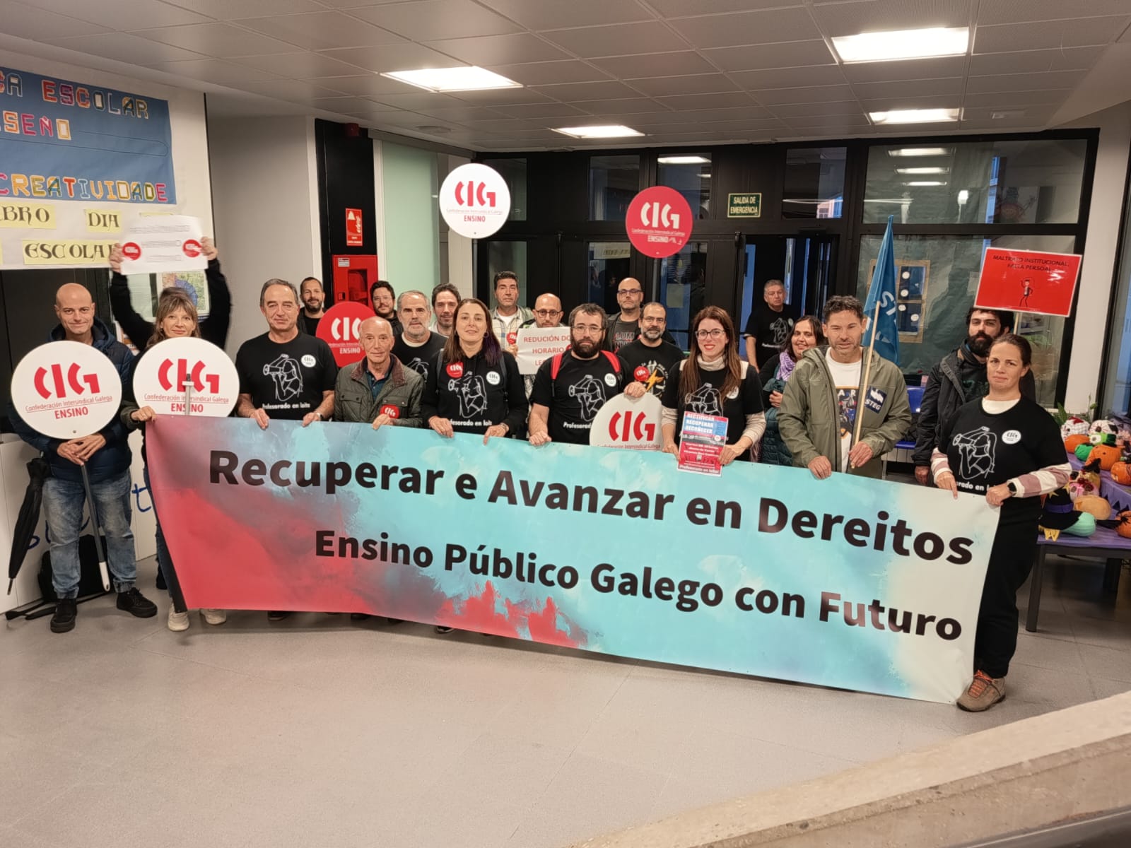 Conclúen esta mañá os peches reivindicativos que unha representación docente protagonizou desde media tarde de onte nas catro capitais de provincia, en Ferrol e en Moaña. Nalgún caso comezaron mentres aínda había actividade lectiva no centro, como no IES Valle Inclán de Pontevedra. Noutros, como en Ourense tiveron visita policial e na maioría houbo chamada da inspección educativa ou incluso da dirección territorial pero en todos se desenvolveron con normalidade e sen ningunha incidencia. Trátase dunha acción de protesta máis, enmarcada nas dúas xornadas de folga convocadas pola CIG e STEG, coa que os promotores pretendían chamar a atención tanto dos medios de comunicación como da sociedade en xeral, así como apelar á Consellaría desde os propios centros de ensino a que rectifique dunha vez e permita que o profesorado recupere os dereitos perdidos nos últimos 15 anos de recortes e que se vexa recoñecido profesional e laboralmente.