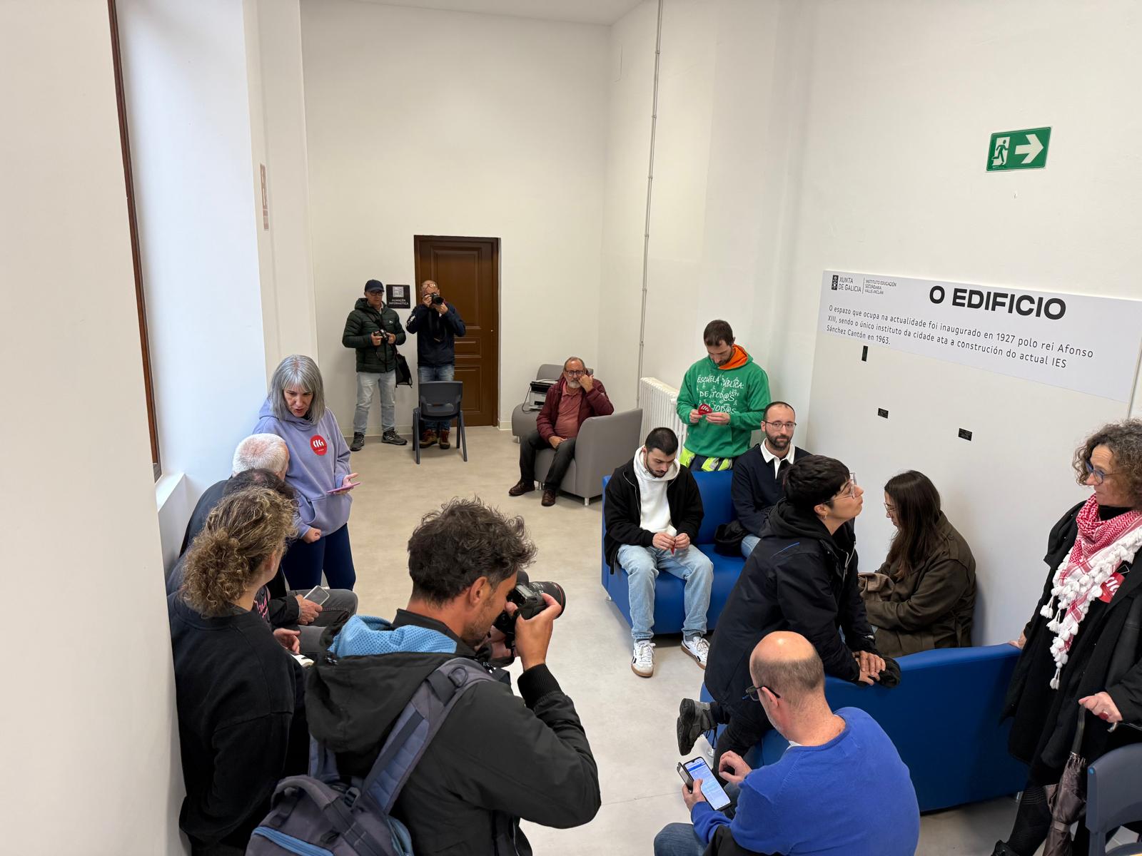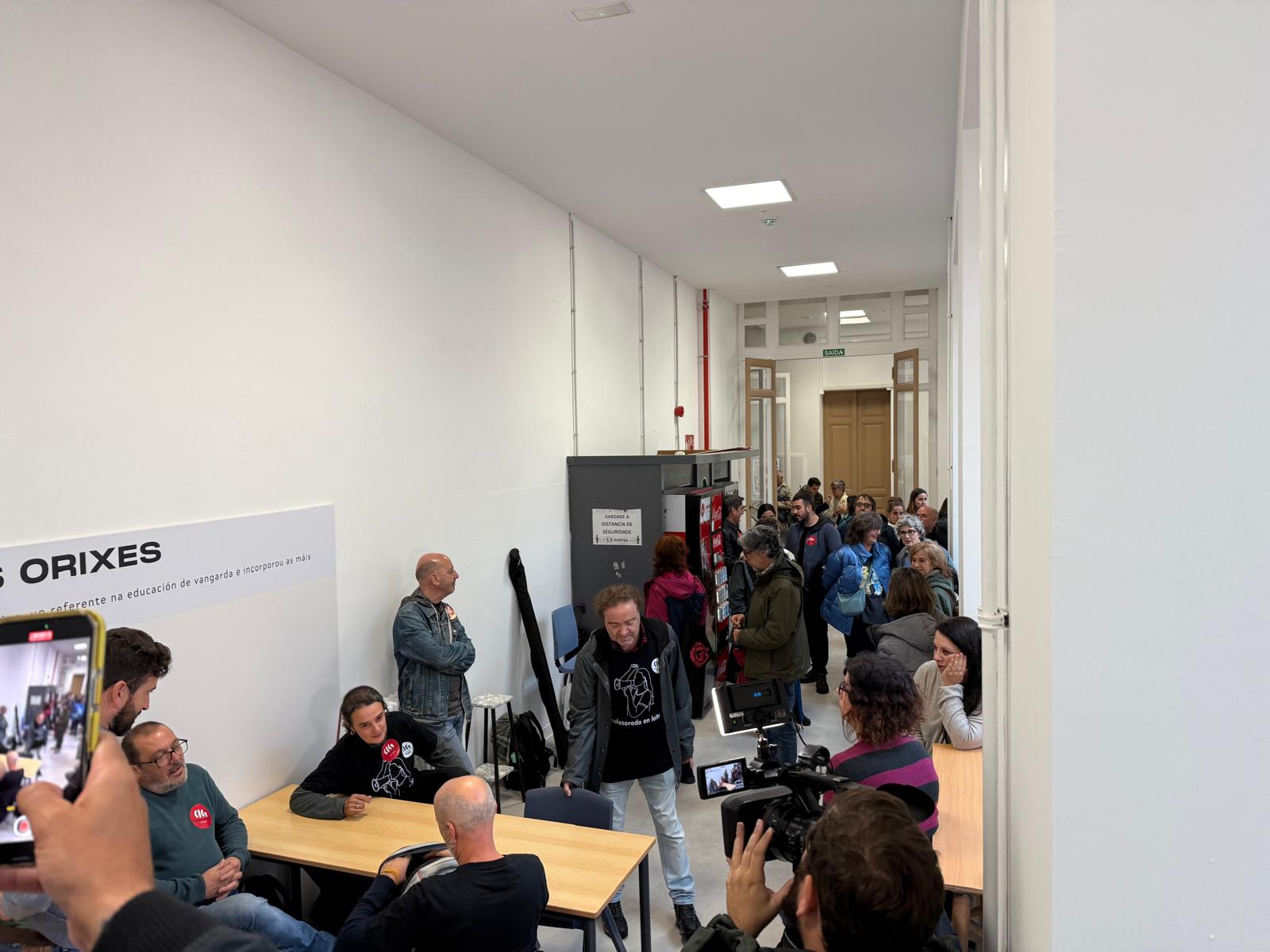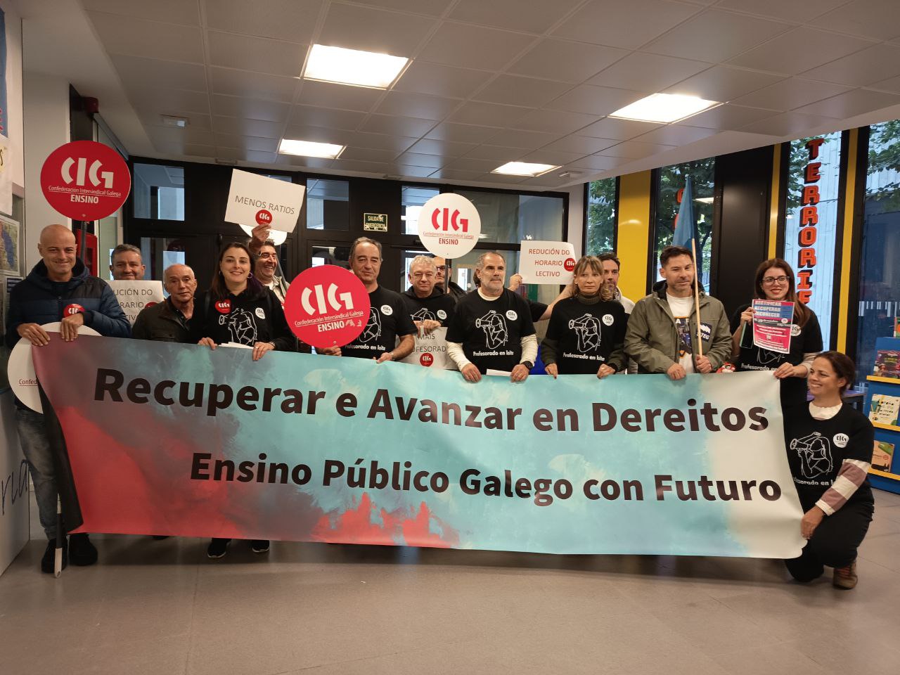 O paro laboral de 48 horas, convocado por primeira vez desde os anos 80 no ensino público, contou esta noite con outra acción reivindicativa que tamén había moito tempo que non se daba neste ámbito. Un grupo formado por máis de cen docentes pechouse contra a media tarde de onte en cinco centros educativos na Coruña, Lugo, Ourense, Pontevedra, Ferrol e Moaña e convocou os medios de comunicación como medida de visibilización do conflito que sosteñen este curso contra a Consellaría de Educación, á que reclaman unha negociación inmediata de melloras reais tanto no ámbito laboral como do ensino público en xeral.
