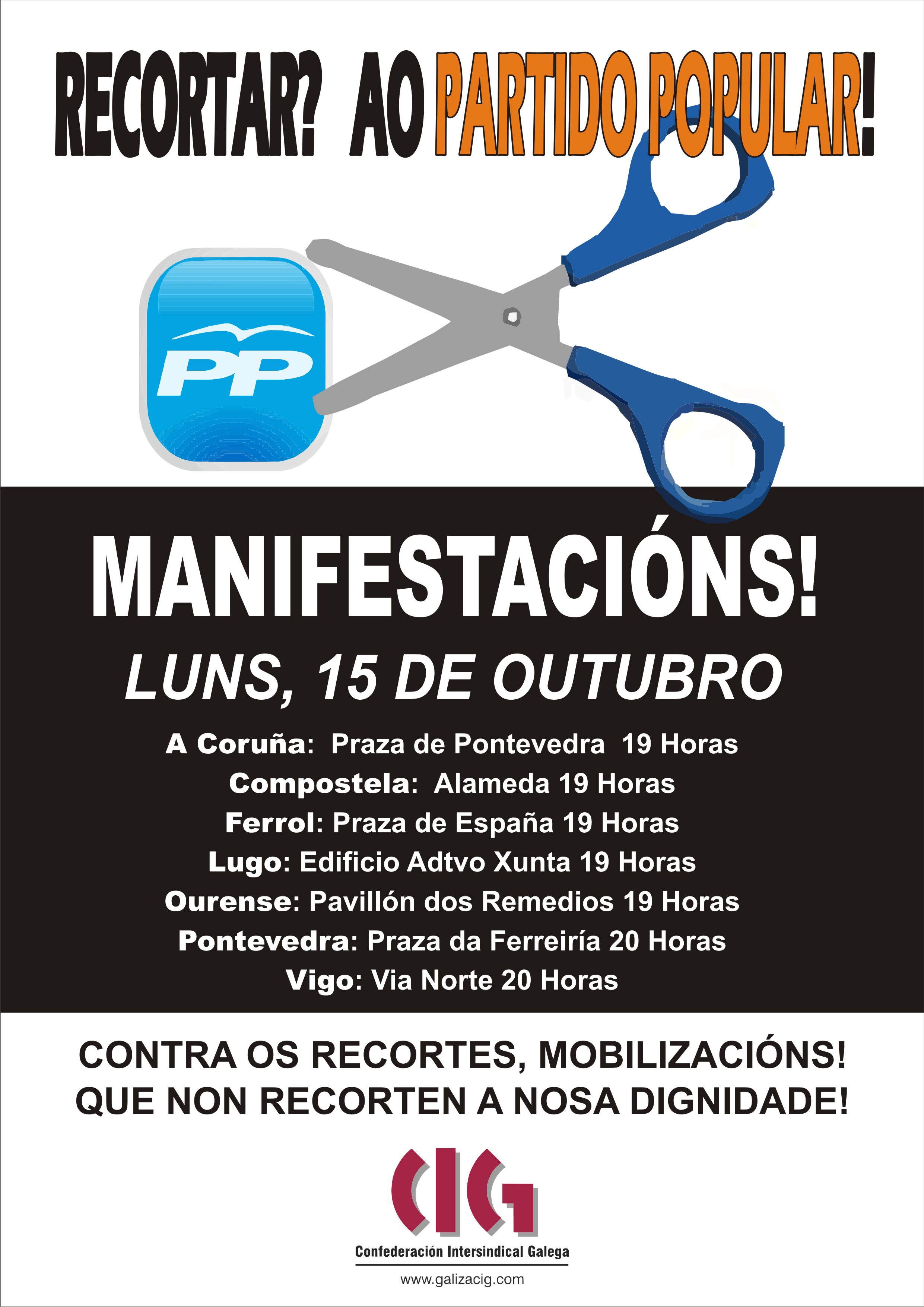 A Plataforma Galega na Defensa dos Servizos Públicos convocou para o luns 15 de outubro manifestacións en todas as cidades. Podes consultar lugares de saída no interior da nova.