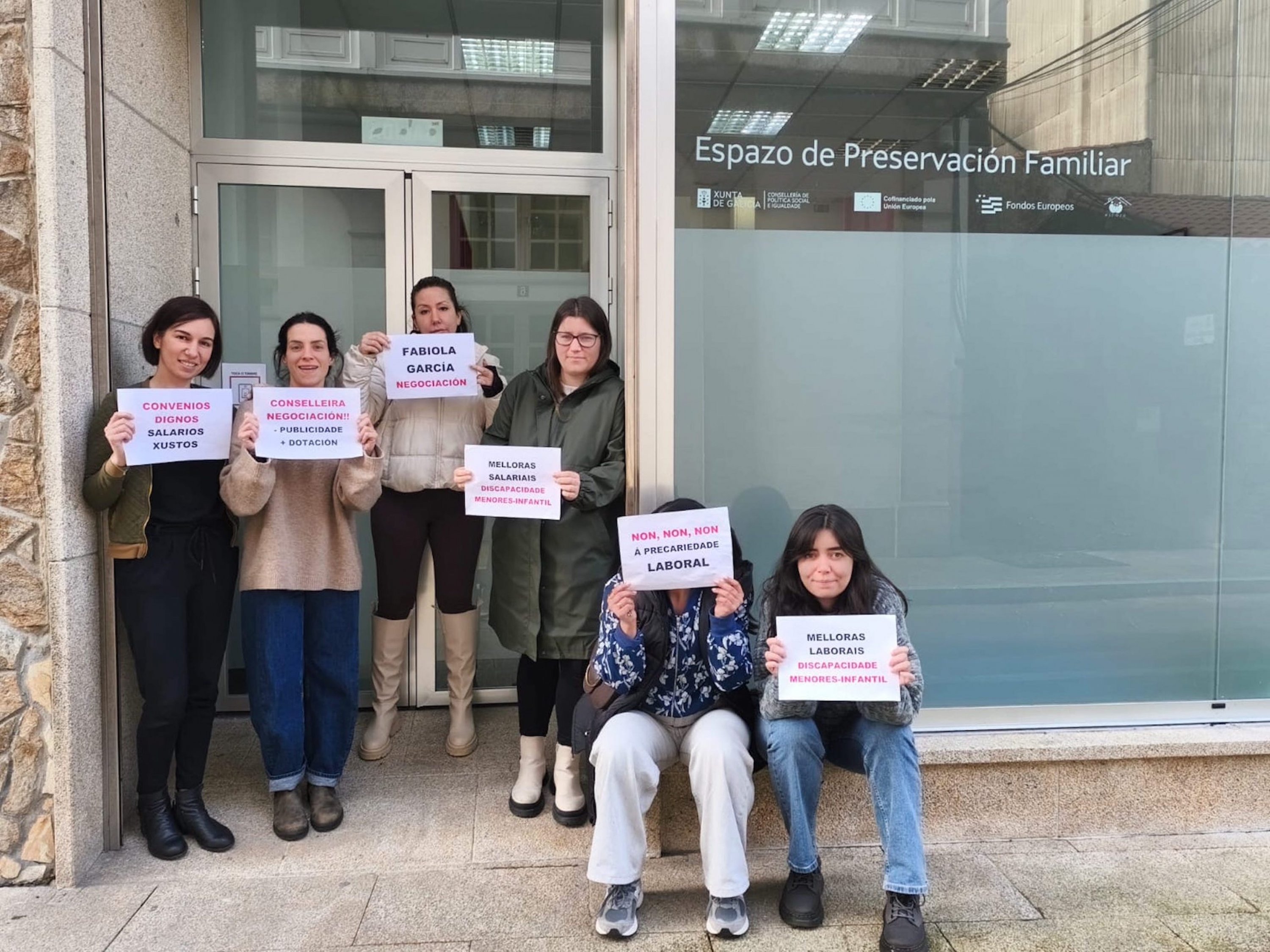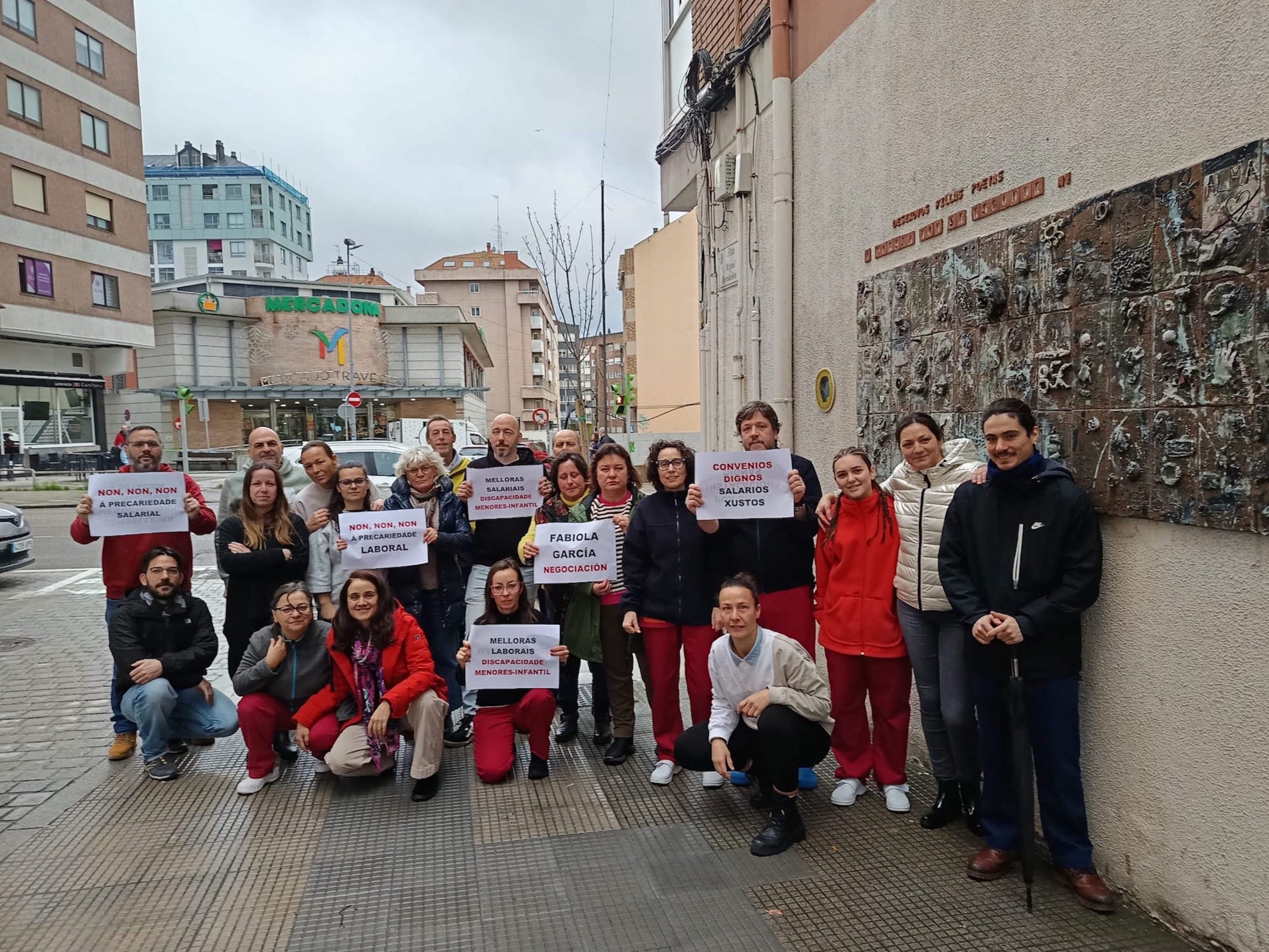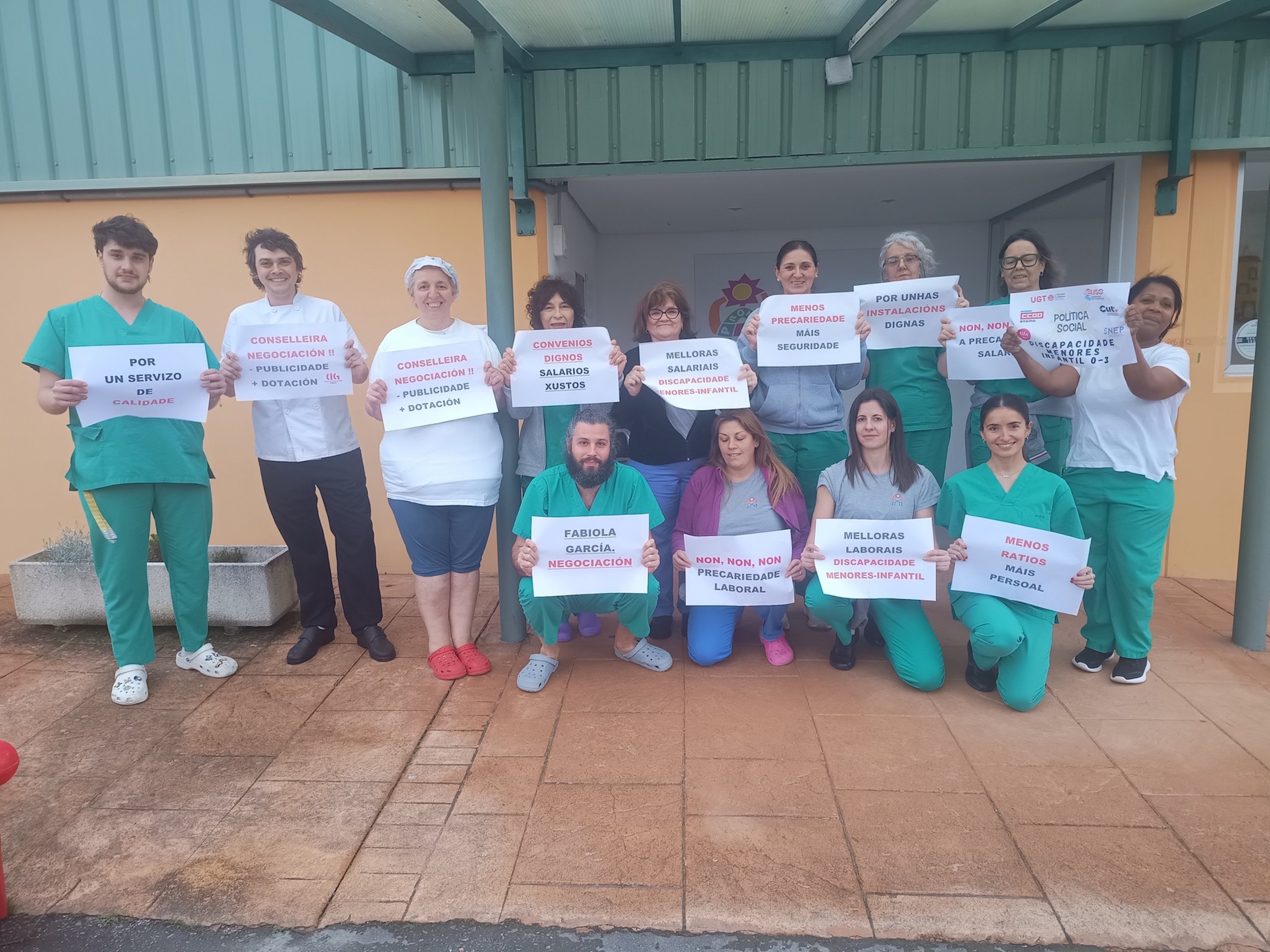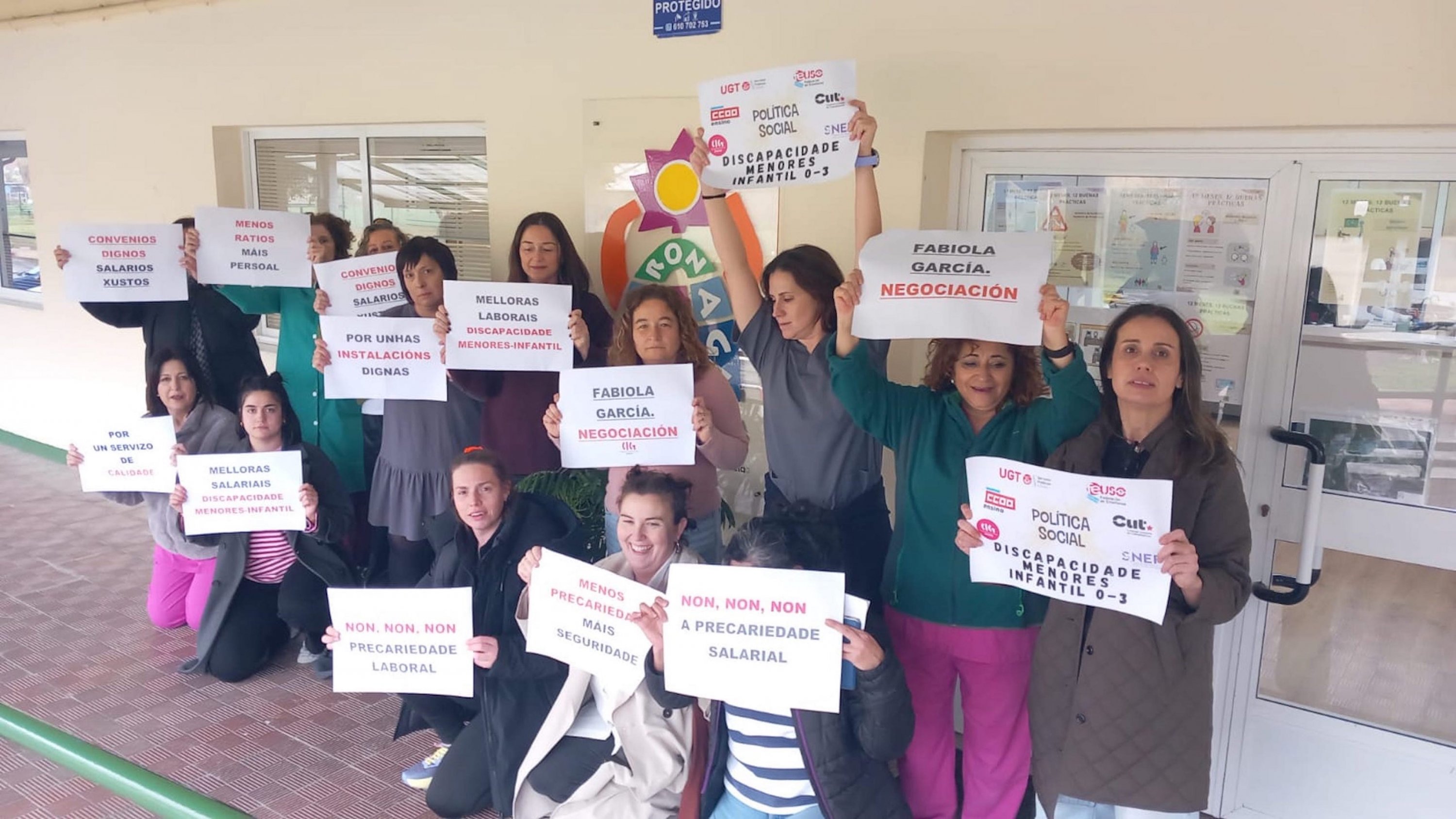 A loita dos máis de 5.000 traballadores e traballadoras de atención a persoas con discapacidade, de protección de menores ou de reforma xuvenil e de escolas de primeiro ciclo de infantil privadas (tanto de xestión directa como indirecta) por dignificar a súa situación laboral trasladouse nas últimas semanas aos propios centros de traballo. Baixo o lema "PolíticaSocialenLoita" están a levarse a cabo diferentes mobilizacións e protestas para dar a coñecer a situación salarial, de ratios, de horario, de falta de persoal e de ausencia de dereitos que padece este persoal entre as familias e os propios usuario e usuarias destes centros, ademais de visibilizar socialmente que, malia soster tres servizos sociais esenciais, apenas cobran o SMI e non teñen apenas permisos nin licenzas para poder conciliar.