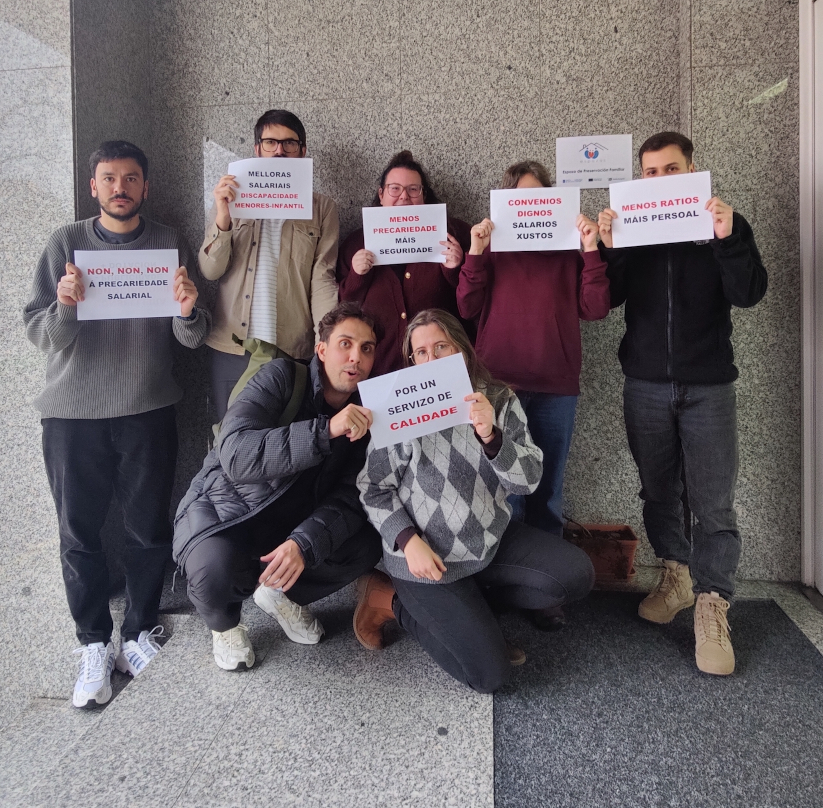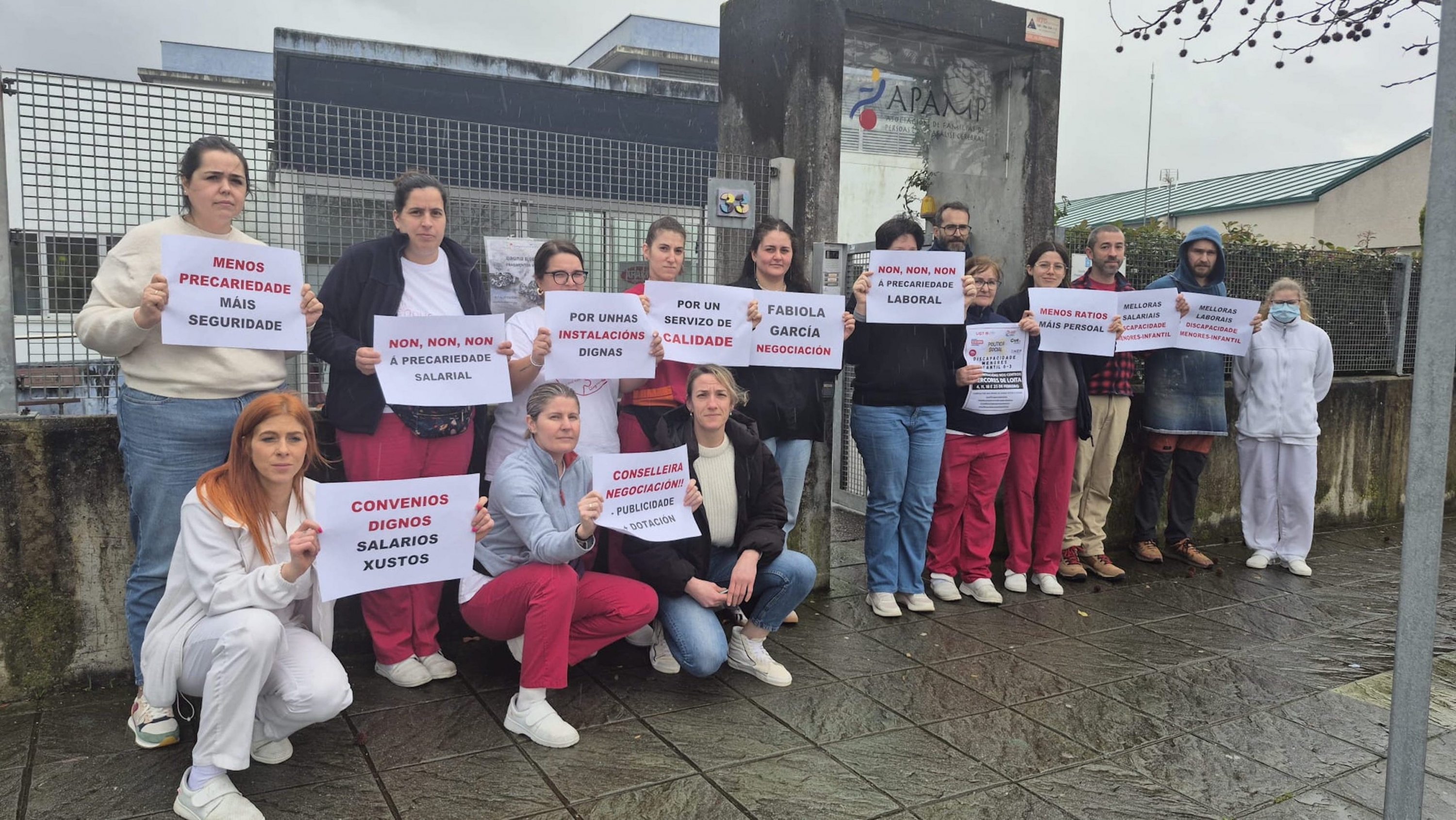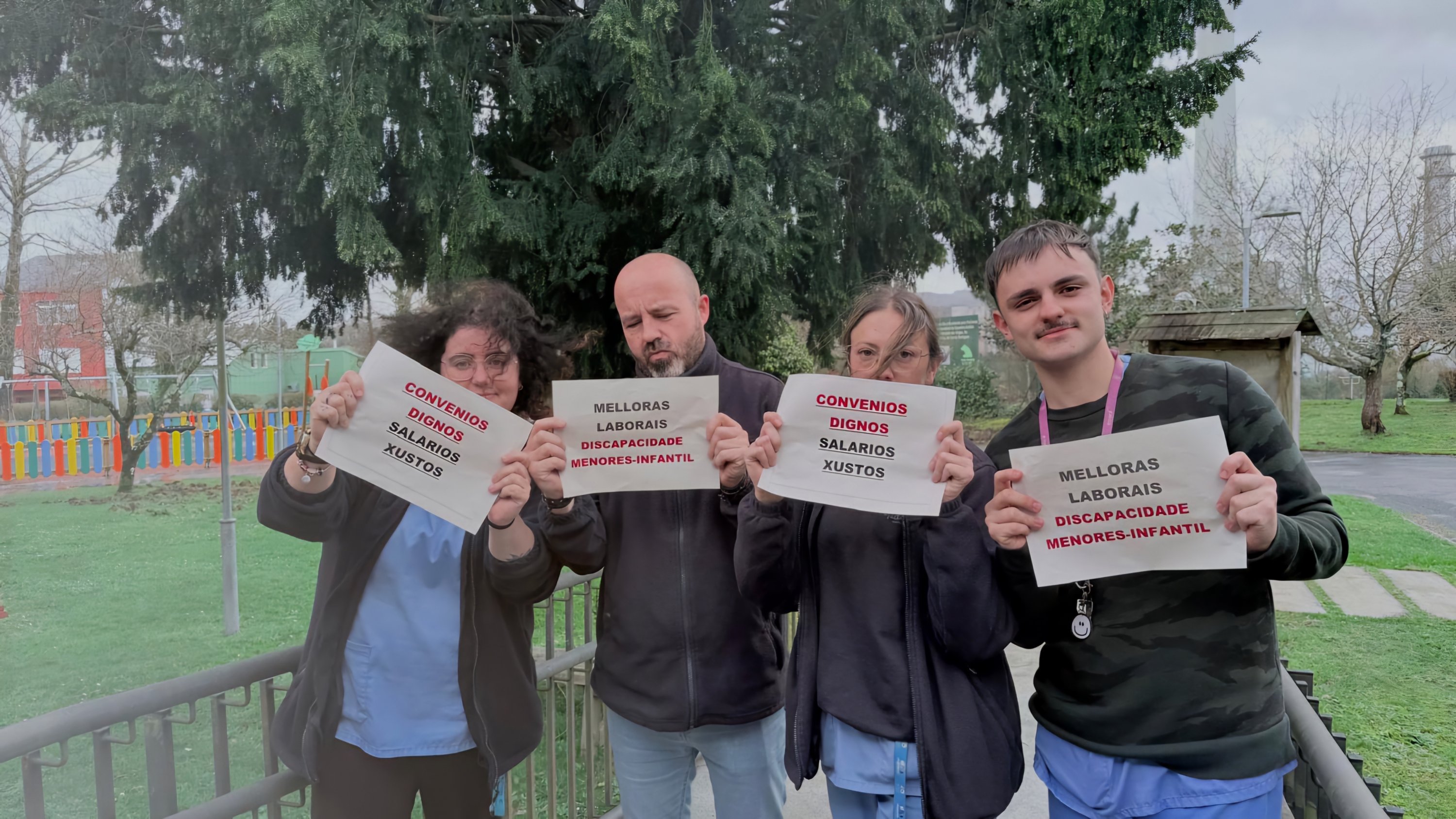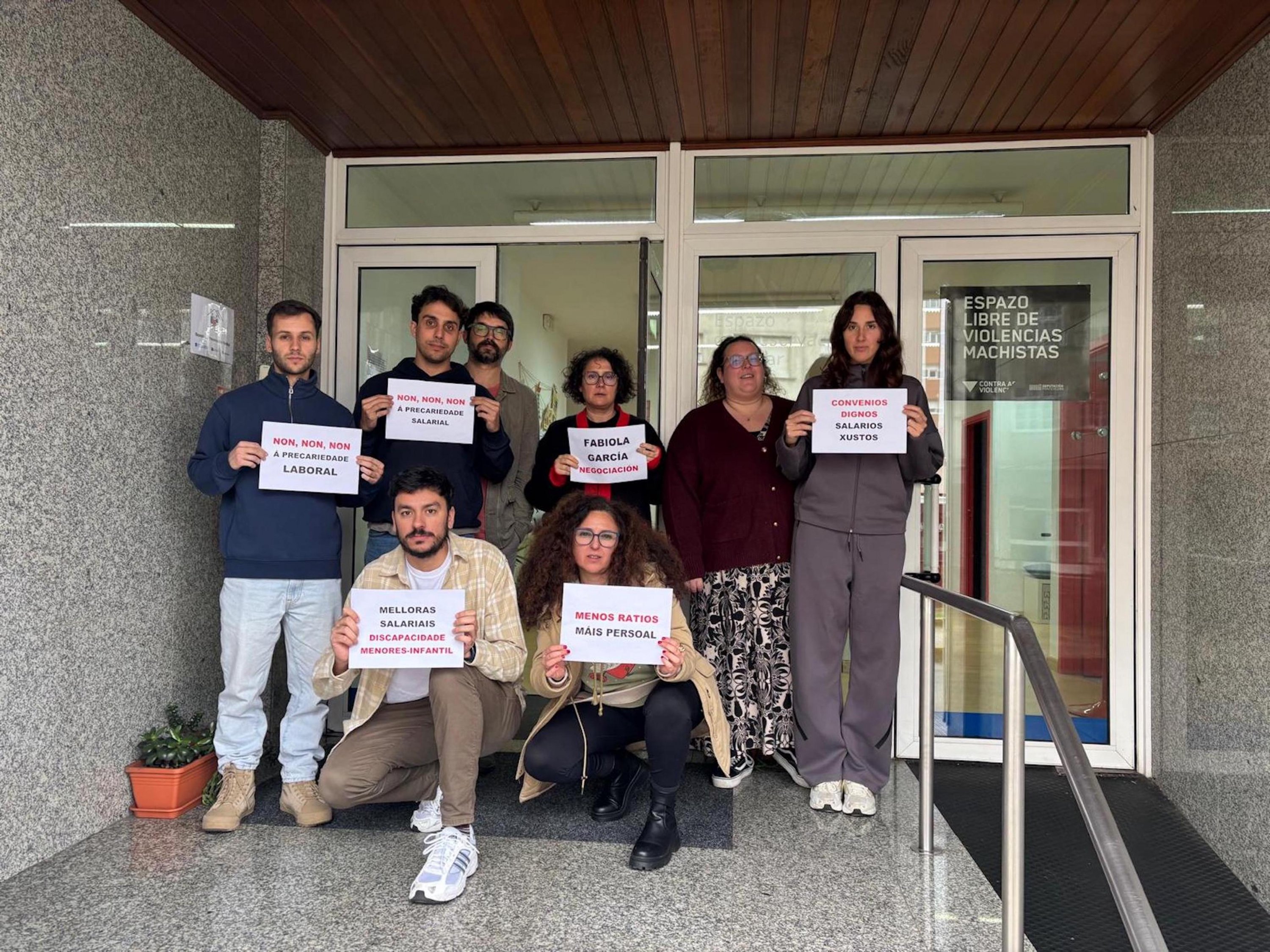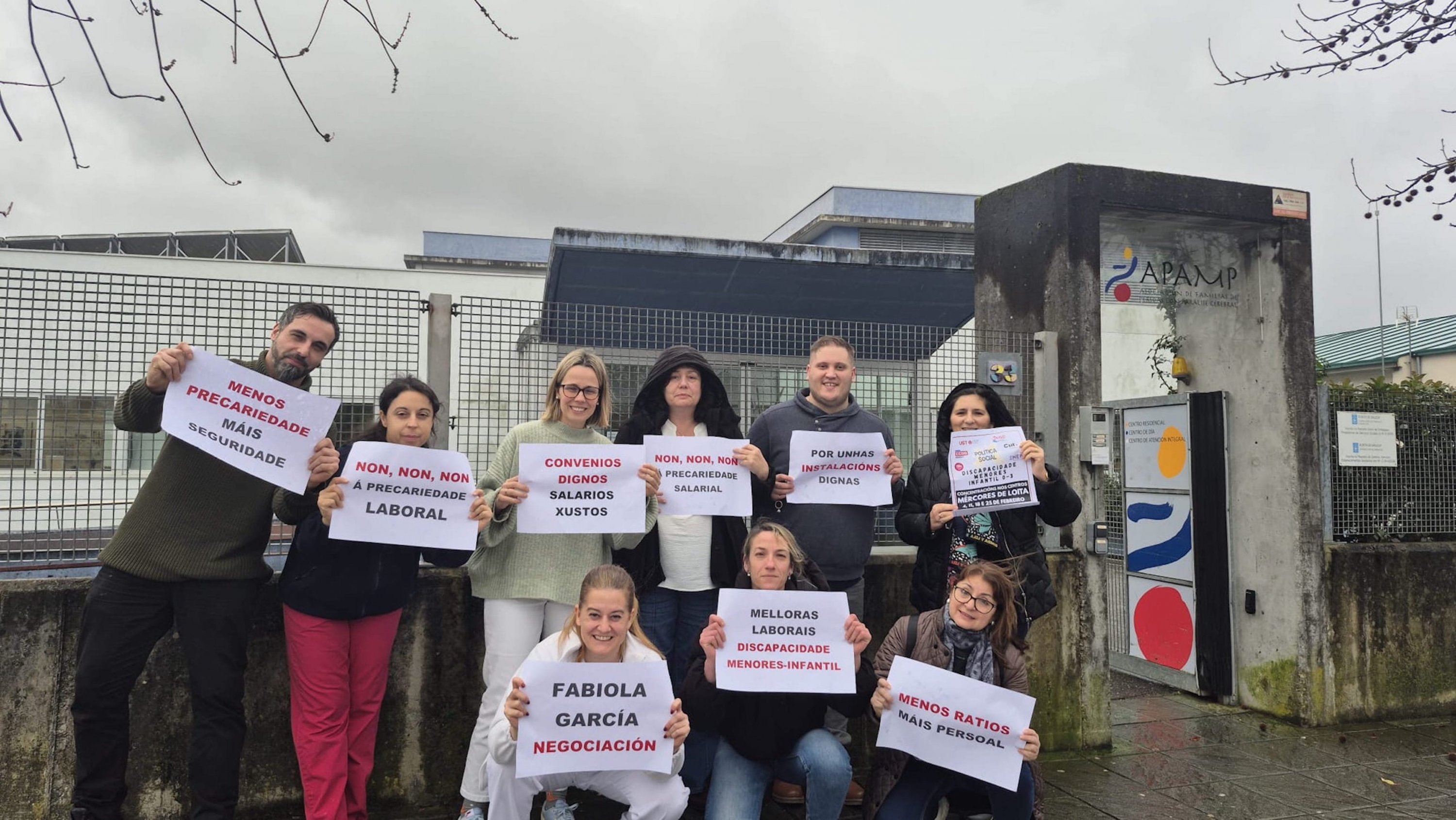 A loita dos máis de 5.000 traballadores e traballadoras de atención a persoas con discapacidade, de protección de menores ou de reforma xuvenil e de escolas de primeiro ciclo de infantil privadas (tanto de xestión directa como indirecta) por dignificar a súa situación laboral trasladouse nas últimas semanas aos propios centros de traballo. Baixo o lema "PolíticaSocialenLoita" están a levarse a cabo diferentes mobilizacións e protestas para dar a coñecer a situación salarial, de ratios, de horario, de falta de persoal e de ausencia de dereitos que padece este persoal entre as familias e os propios usuario e usuarias destes centros, ademais de visibilizar socialmente que, malia soster tres servizos sociais esenciais, apenas cobran o SMI e non teñen apenas permisos nin licenzas para poder conciliar.