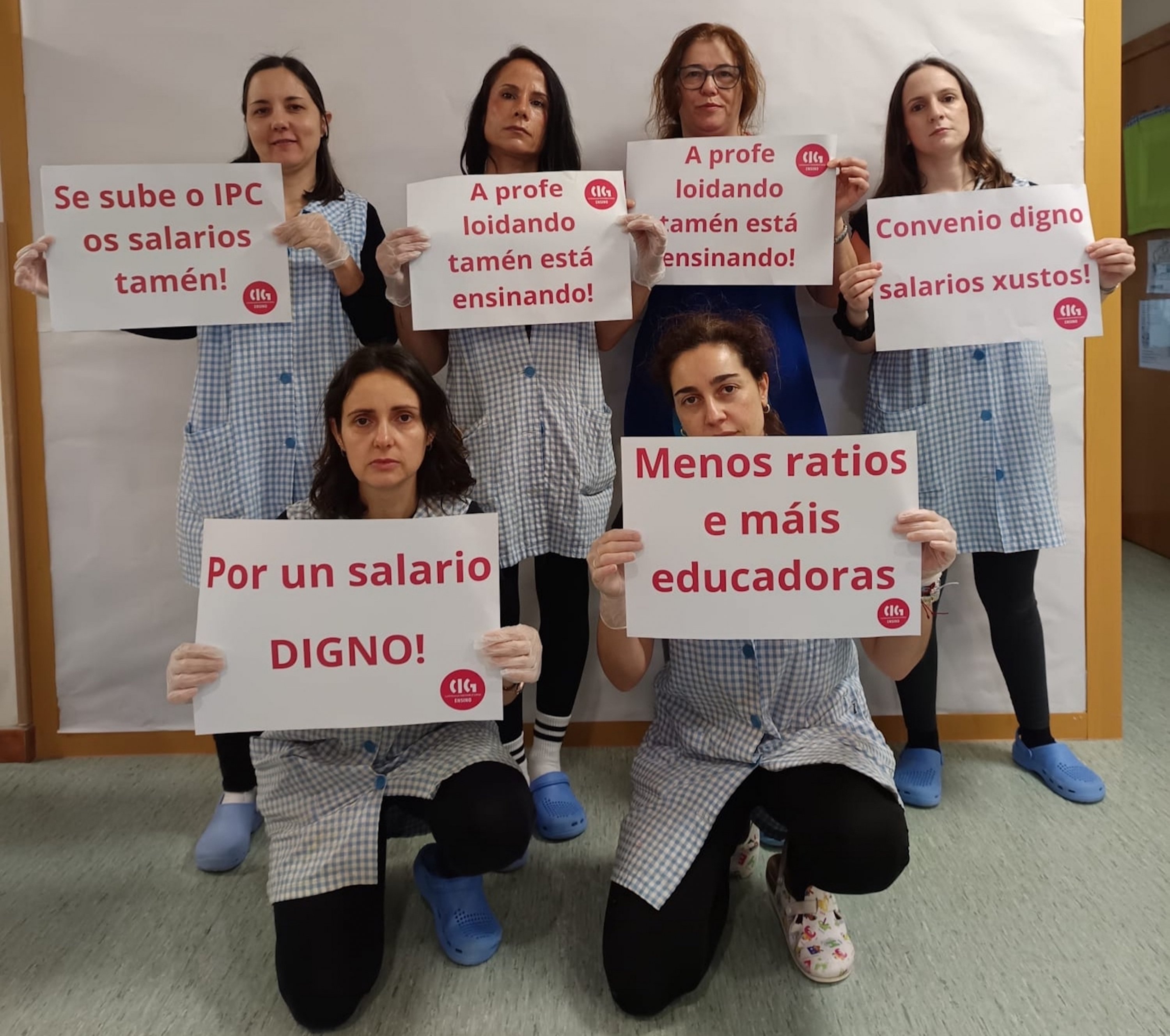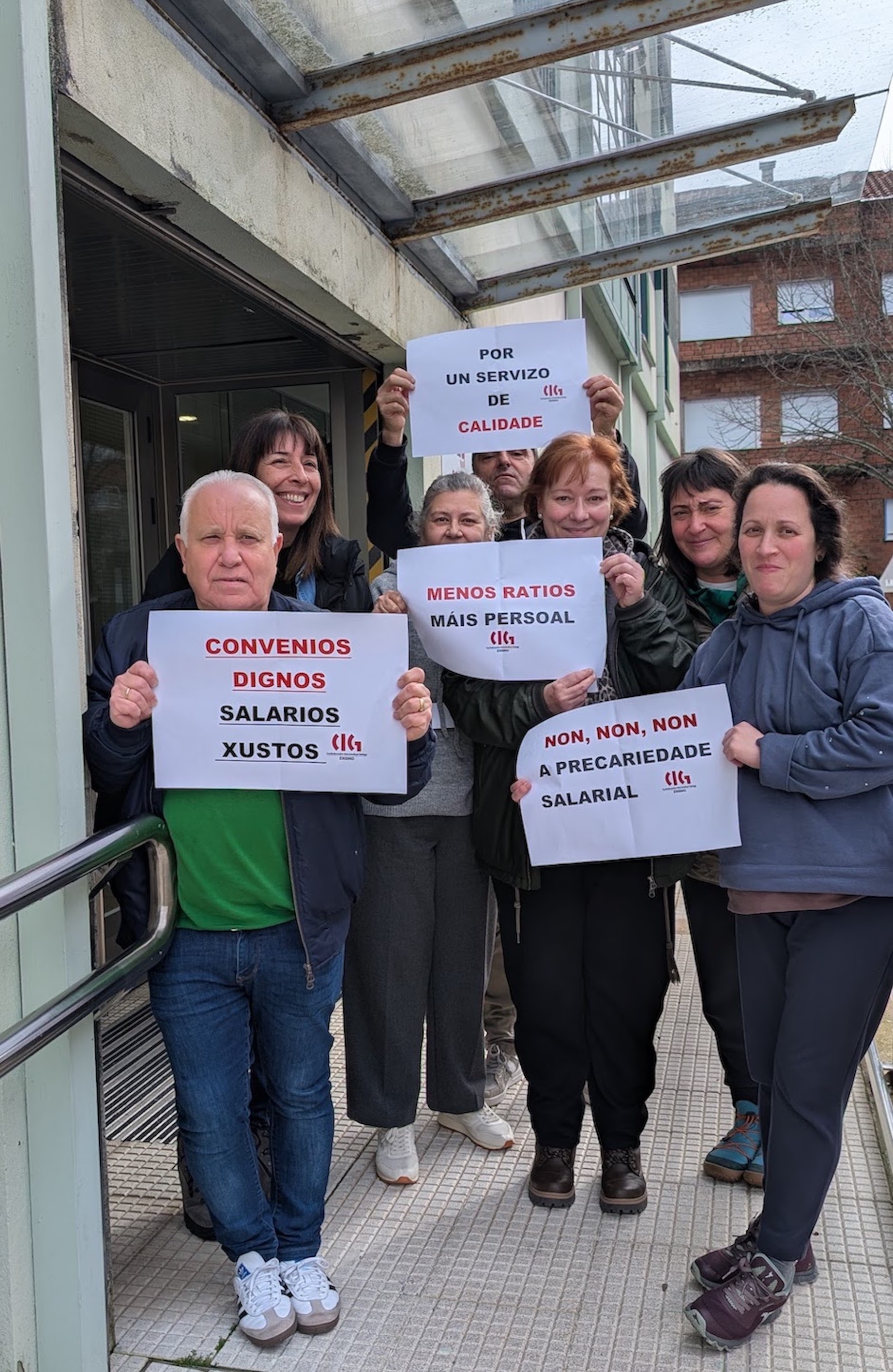 Mañá continúa unha semana máis a acción "Mércores en Loita" que consiste en que desde os propios centros de traballo se realicen concentracións con mensaxes reivindicativas nas que se amosa o día a día das súas condicións laborais. Ao longo deste mes de febreiro xa se foron realizando este tipo de iniciativas visualizándoas nas redes sociais e de cara á sociedade, como se pode ver na seguinte galería de imaxes: