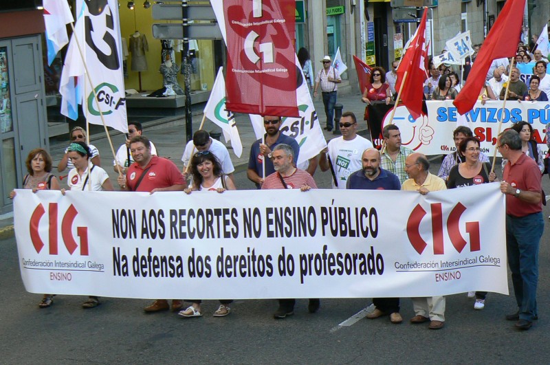 Ambos Gobernos encontran a maneira de privatizar o público, lanzar á cidadanía aos brazos das empresas especuladoras en servizos sociais, educativos e sanitarios, medios de comunicación e transporte, e arremeter sen contemplacións contra o persoal do sector público, recortando os seus dereitos laborais e sindicais, destruíndo emprego e intentando socavar a confianza da cidadanía con campañas mediáticas e políticas destinadas a desacreditar a súa imaxe. Estes Gobernos, coñecedores de que a estrutura laboral do Sector Público e os dereitos conquistados ao longo dos anos polo seu persoal, constitúen un punto de referencia para traballadores e traballadoras doutros sectores laborais, pretenden pasarnos rolo a toda máquina para achandar o terreo aos intereses empresariais.
