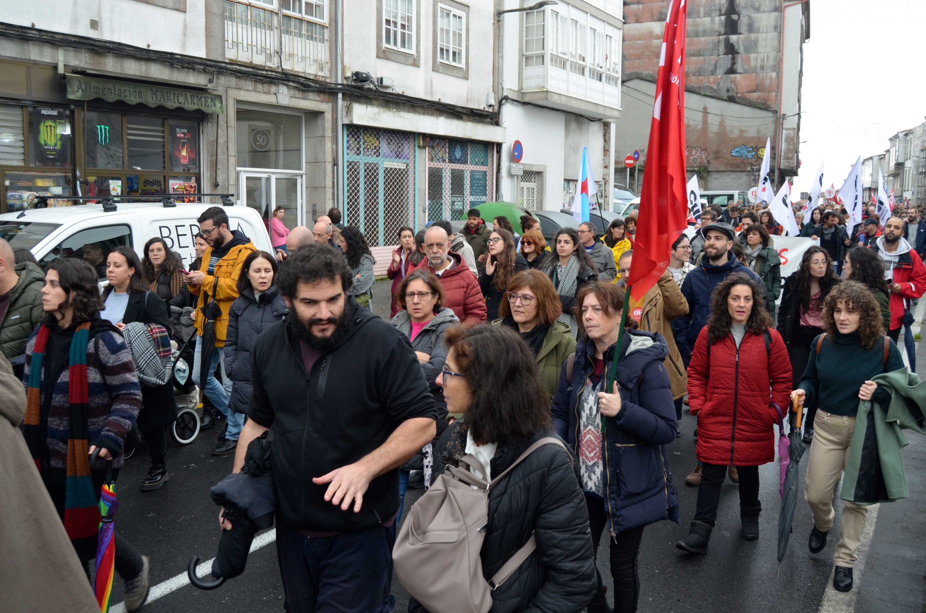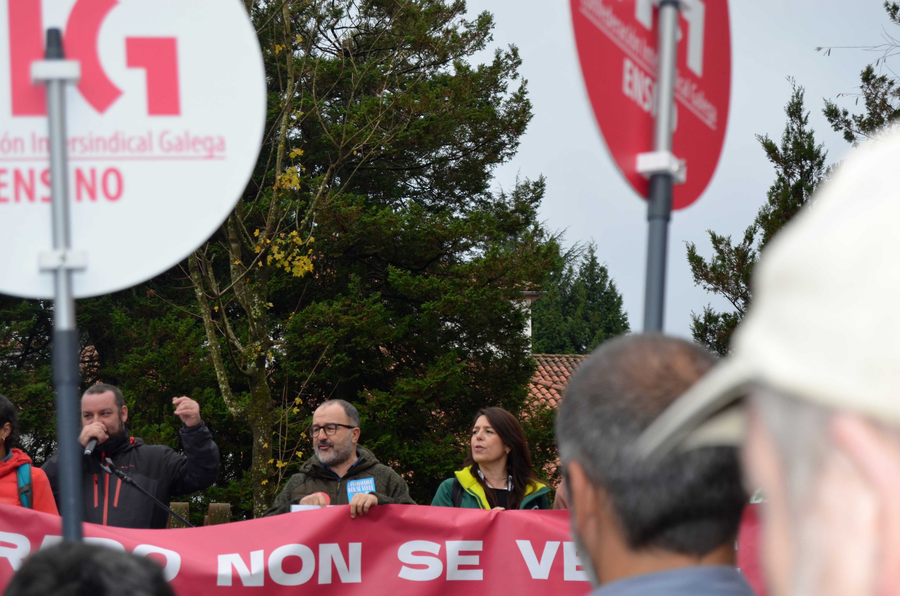 “Dunha foto fixa en 2009 na que o profesorado galego era o que tiña o mellor horario de todo o Estado, con 21 sesións lectivas en infantil e primaria e 18 no resto das etapas a outra en 2024 na que será o que teña o peor horario mantendo as 20 horas en secundaria, FP e ensinanzas de réxime especial xa en solitario e baixando a 23 para os mestres e mestras pero sen incidencia real na contratación de máis efectivos. Este é o balance dos 14 anos en materia de persoal do PP á fronte da Xunta e que o sitúa como o goberno máis reaccionario e que máis despreza o seu profesorado de todo o Estado”. Así de crítico se dirixía o secretario nacional da CIG-Ensino, Suso Bermello, aos medios de comunicación antes da manifestación celebrada esta mañá en Compostela na que se volveron reunir miles de docentes na que é a segunda xornada de folga convocada no ensino público en apenas un mes. “Hoxe aínda son máis os motivos para esta mobilización. Se cando o presidente Rueda, de forma totalmente inaudita, asinou un acordo “de renuncias” a recuperar os nosos dereitos laborais, fundamentalmente o horario, e a rebaixar as ratios en todas as etapas educativas desde o vindeiro curso así como a poñerlle freo á excesiva burocratización do labor docente nunha falsa negociación que se produciu dun xeito apresurado en 5 días e que se pechou como inicialmente a Xunta xa tiña no seu guión, apenas mes e medio despois desa afronta o malestar do profesorado vai en aumento e así se puido constatar no éxito de todas as accións levadas a cabo neste mes de novembro de loita que culmina hoxe de novo cunha gran resposta tanto no seguimento da folga como na asistencia a esta manifestación”, indicou Bermello.