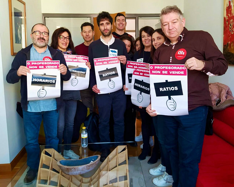 Ante a falta de talante democrático amosada onte polo conselleiro de Educación", representantes da CIG-Ensino, STEG e CSIF volveron acudir esta mañá ás dependencias da Consellaría de Educación para solicitar ser recibidos por Román Rodríguez tendo en conta que hoxe non ten ningún problema de axenda para ter unha reunión coa representación maioritaria do profesorado do ensino público galego ao estar celebrándose a reunión semanal do Consello da Xunta do que forma parte.