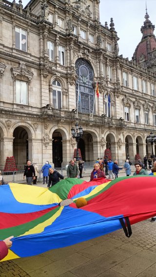 Para visibilizar as súas reivindicacións, as traballadoras e traballadores sairón en manifestación dende as instalacións de Riazor até o Pazo de María Pita, onde durante unha hora fixeron unha exhibición das diversas actividades que imparten nas escolas deportivas.