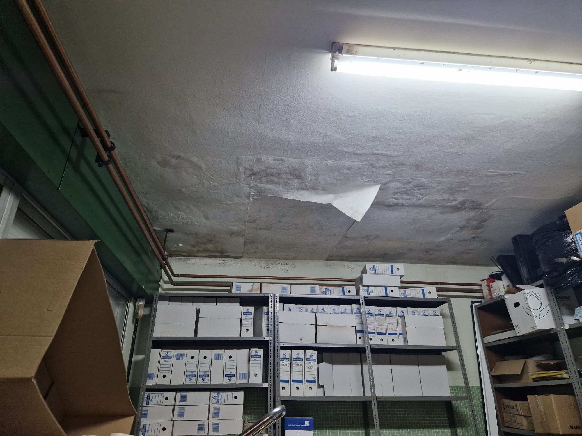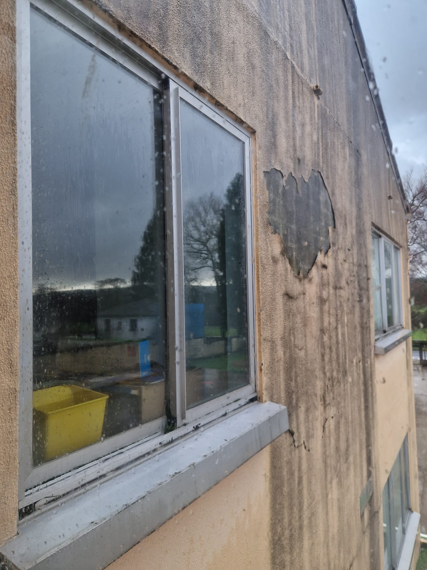 Entre otras deficiencias, as pingueiras, as filtracións de auga, o frío que se coa por unhas xanelas sen aillamento… fan que a docencia sexa imposible nunhas aulas con deshumidificadores funcionando constantemente.