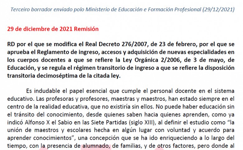 Terceiro borrador de modificación do Real Decreto de acceso e ingreso. Ligazón