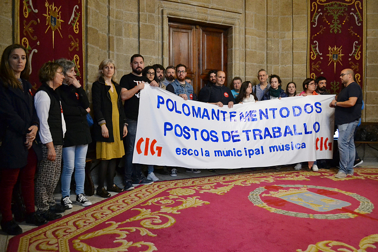 Desde a CIG-Ensino, que ostenta a representación sindical do persoal, o seu secretario comarcal, Rubén F. Monteagudo, demanda que se restableza inmediatamente a normalidade dos pagos así como que se tomen medidas para que esta situación non se volva repetir. Así mesmo avanza que a continuidade dun servizo esencial para a educación e a cultura da cidade está en perigo xa que "de manterse esta situación o día 1 de decembro convocarase unha folga indefinida e calquera acción que sexa pertinente".