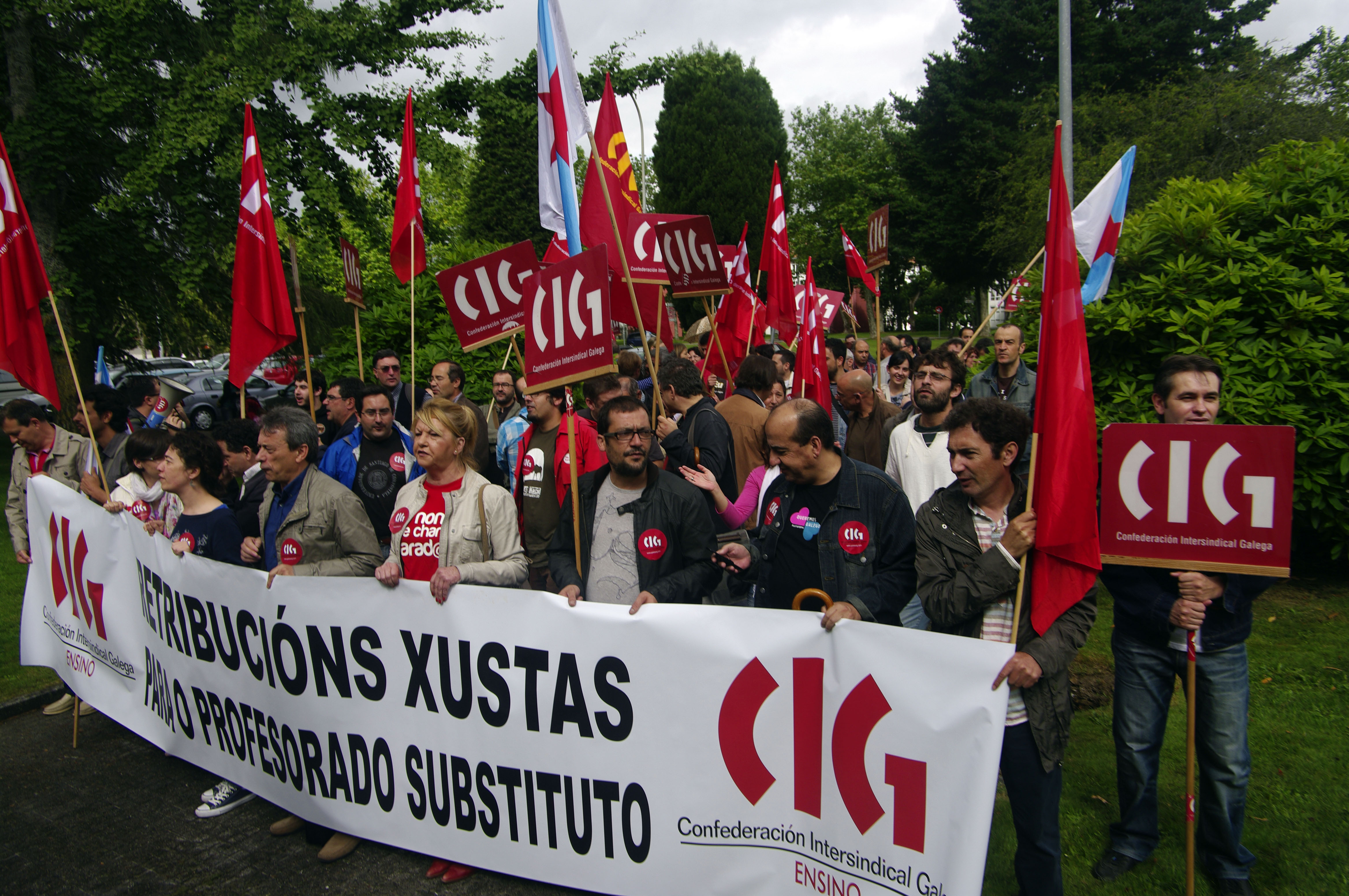 A CIG-Ensino denuncia que a Consellaría adoptou esta nova medida de recorte de xeito unilateral e advirte que continuará coas mobilizacións se non repón un dereito que se conseguiu que se recoñecese despois de importantes mobilizacións no ano 2006. Durante a concentración de hoxe, Anxo Louzao, o Secretario Nacional da CIG-Ensino, lembrou que esta decisión afecta ao profesorado que traballa máis en precario “que ten que estar continuamente á disposición da Administración, ao que se chaman dun día para outro e ten que incorporarse en calquera centro do país con contratos dun día, unha semana, un mes...”