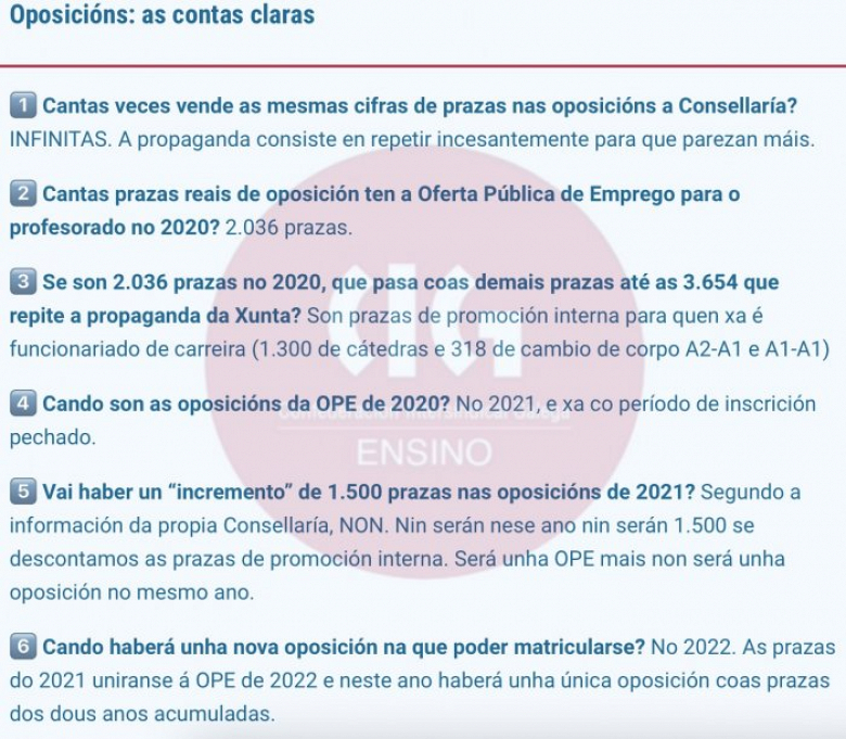 A Consellaría, axudada polos medios afíns, segue a xogar coas cifras de prazas nas oposicións para enganar ao persoal opositor e á sociedade.