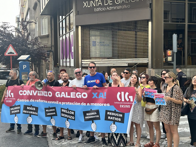 A CIG-Ensino desenvolveu este xoves concentracións diante das Xefaturas Territoriais de Política Social na Coruña e Ourense para reclamar a negociación dun convenio colectivo galego para o persoal dos centros de reforma xuvenil e protección a menores que permita mellorar as súas condicións laborais e salariais.