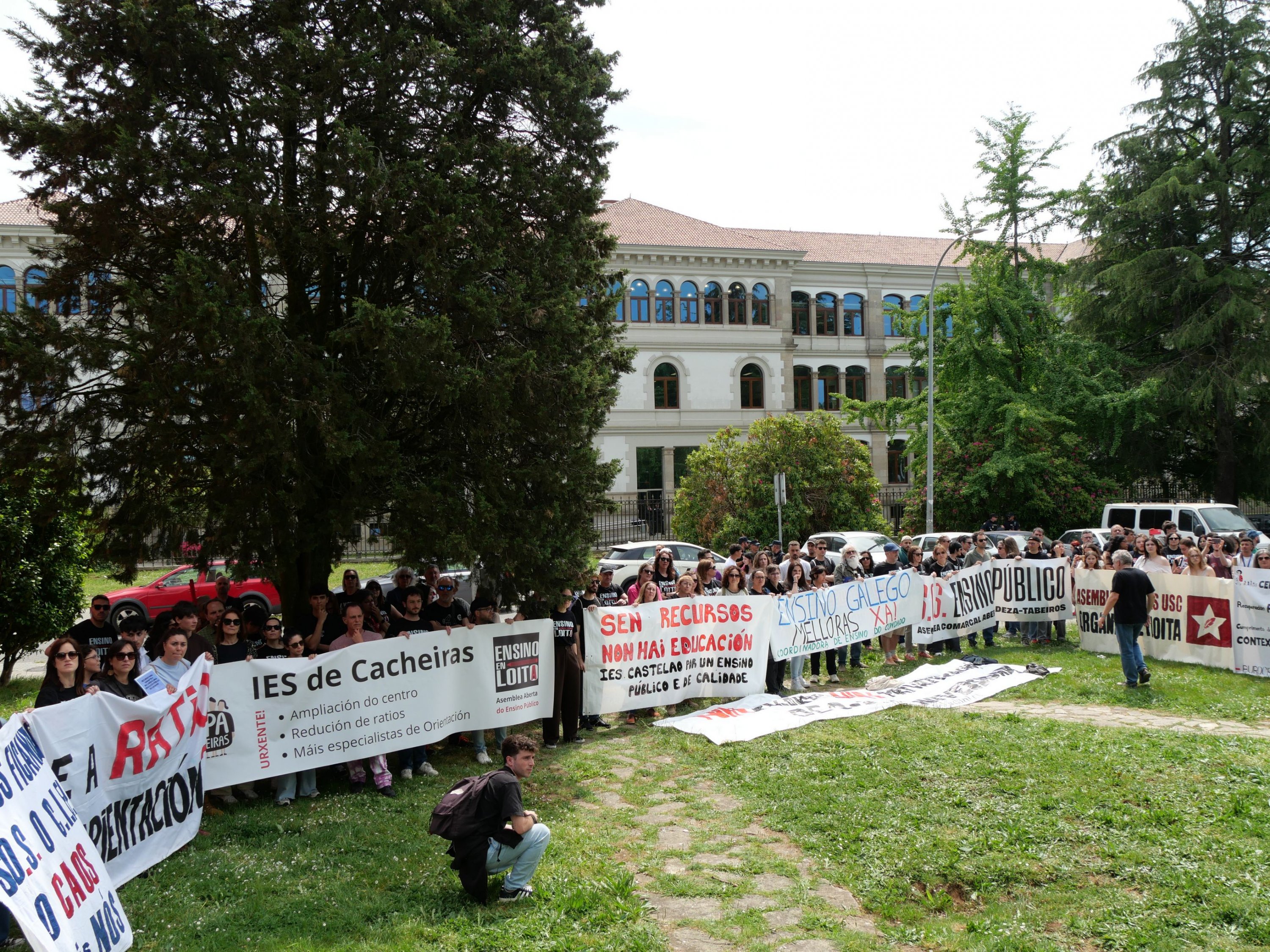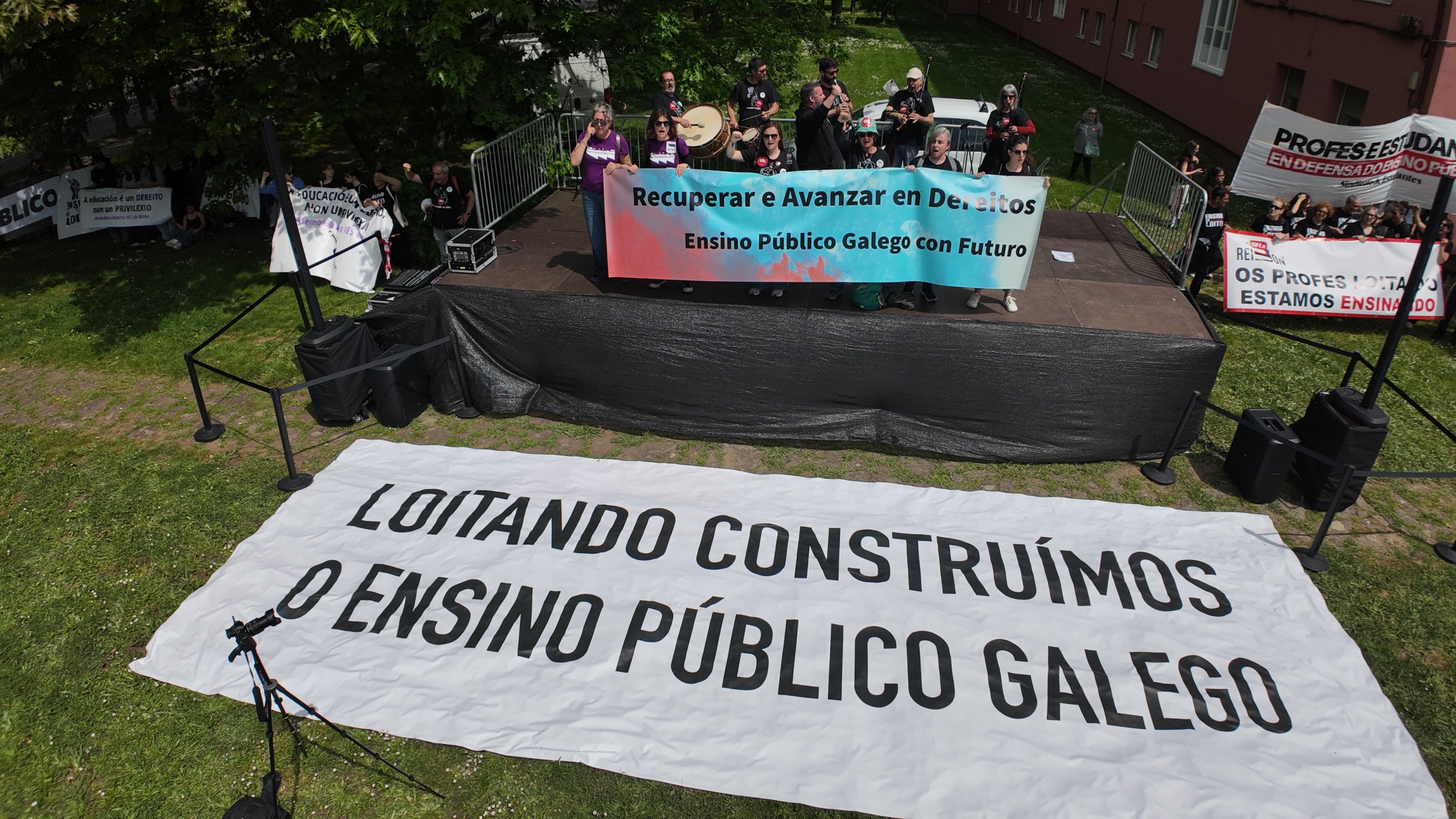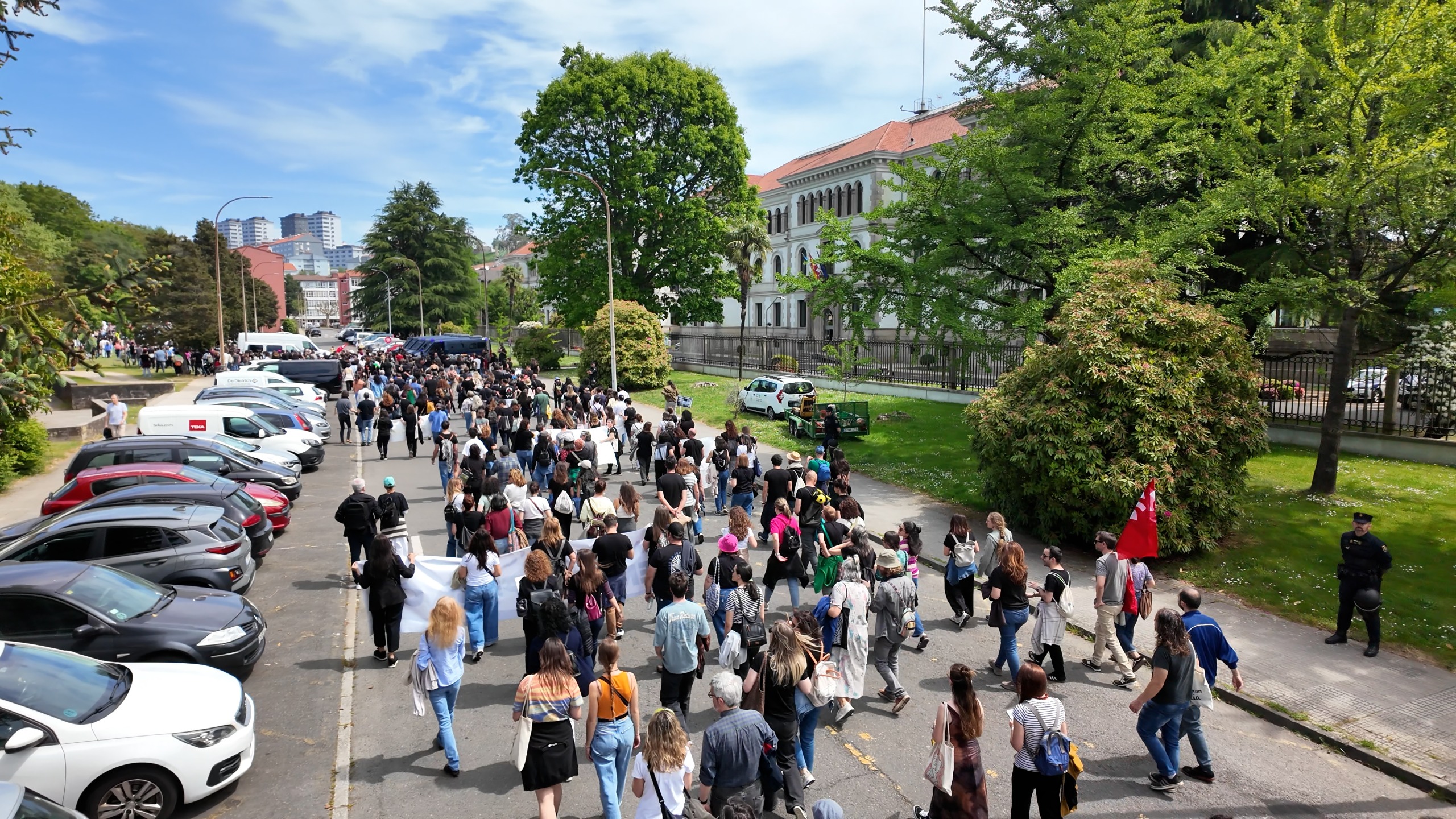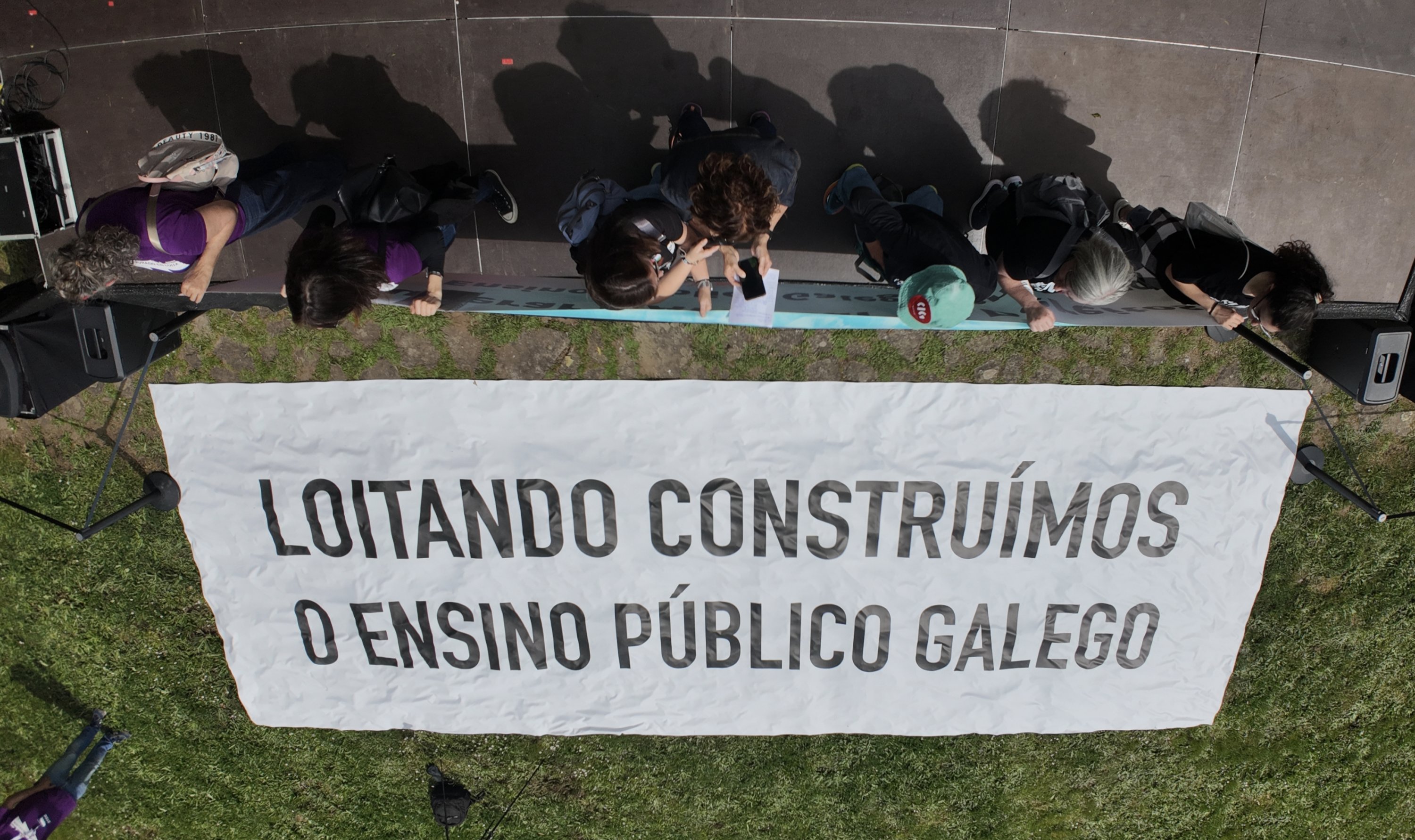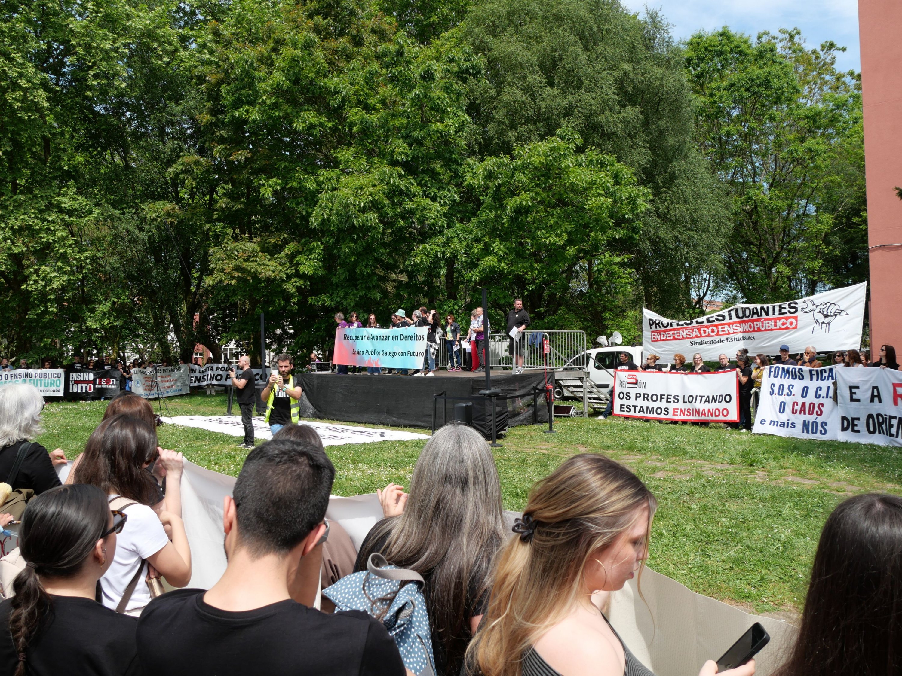 A mobilización desenvolveuse no marco da nova xornada de folga convocada en todo o ensino non universitario e rematou diante do complexo administrativo da Xunta en San Caetano coa lectura dun manifesto a cargo de sete docentes que representan a distintos colectivos e ensinanzas (infantil, primaria, secundaria, persoal de atención á diversidade, formación profesional, ensinanzas de réxime especial e persoal interino e substituto). Coa de hoxe, son xa seis as convocatorias de folga que secunda o profesorado dende que comezou o curso actual, despois de 16 anos de recortes aplicados polo Goberno do PP.