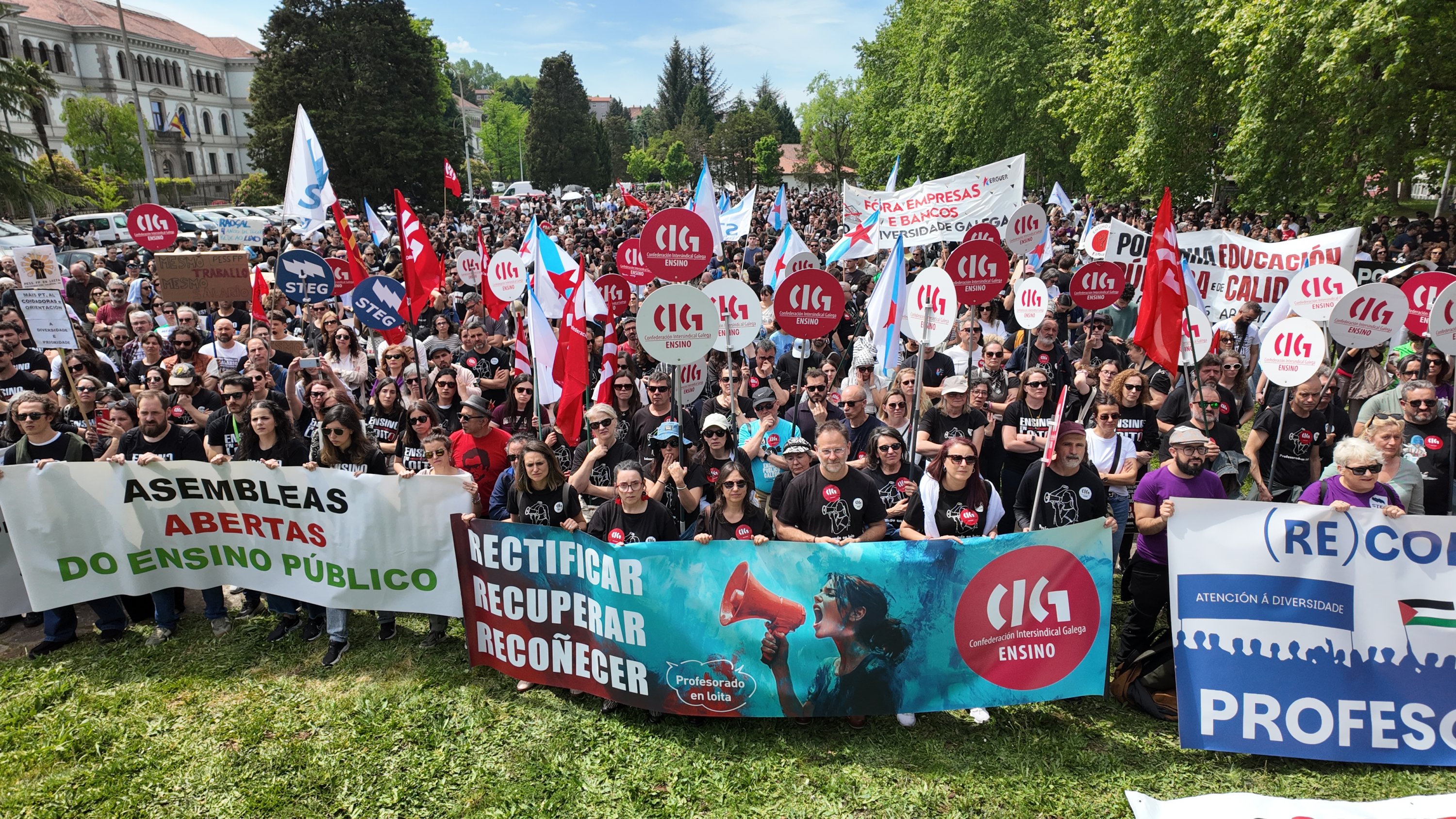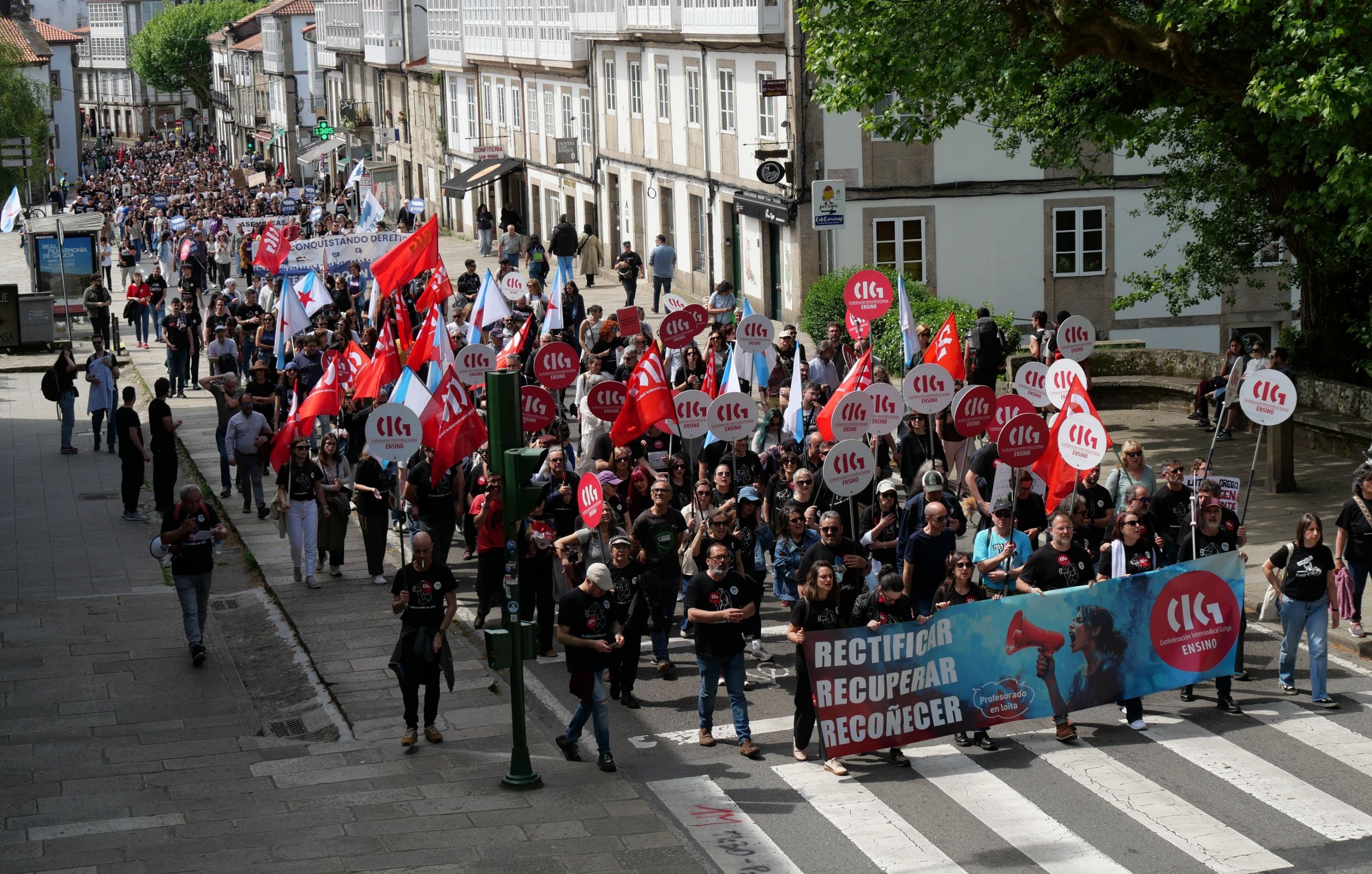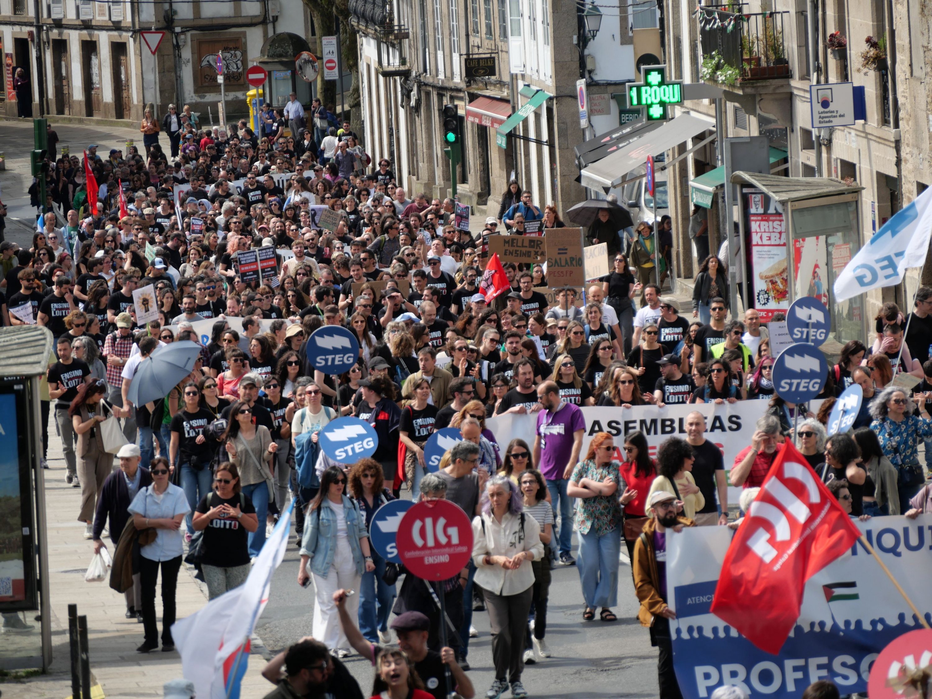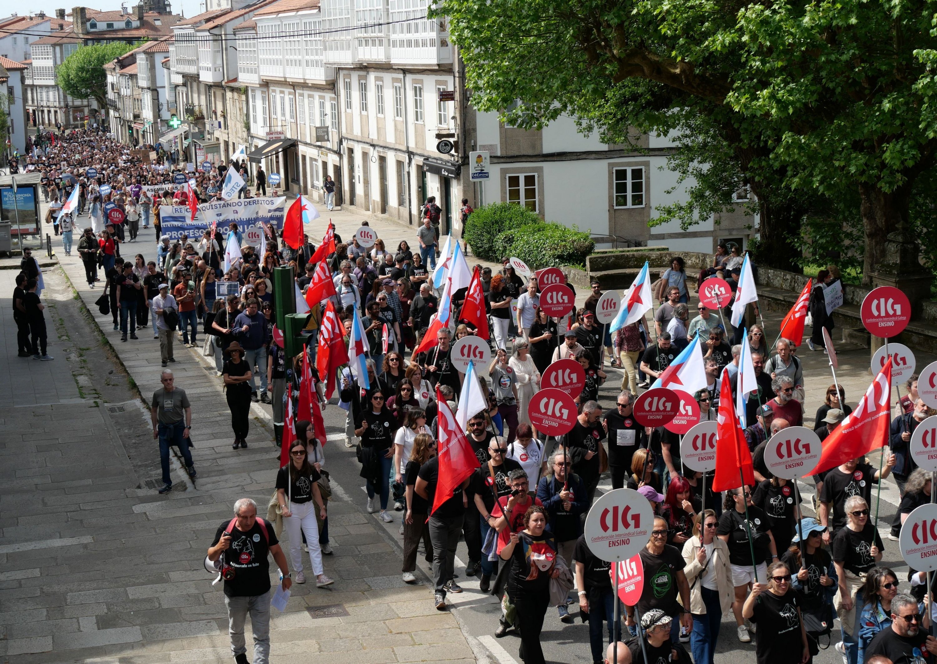 Máis de 5.000 persoas marchan para reclamar melloras laborais, recuperar dereitos e rexeitar as políticas educativas da Xunta.