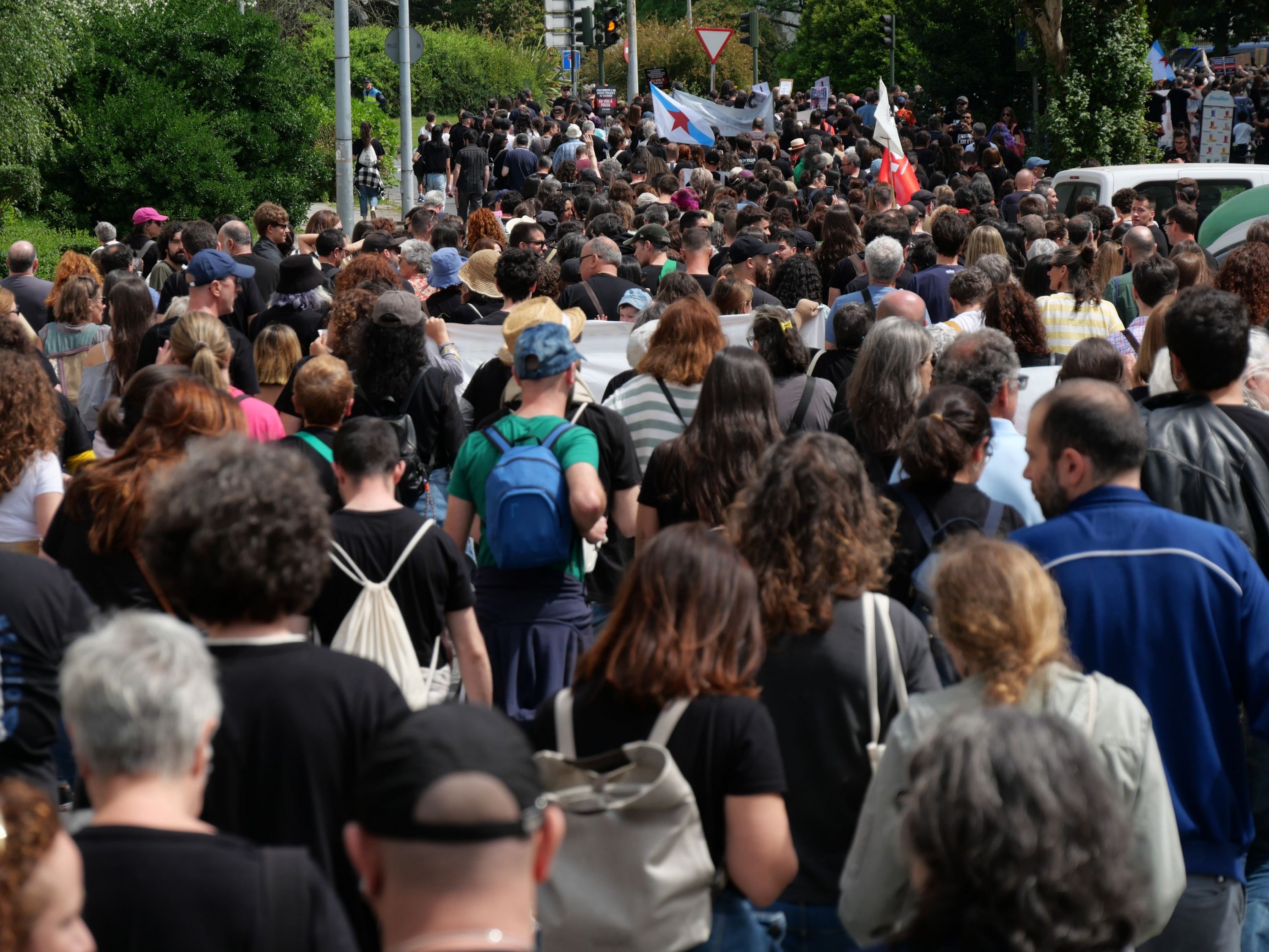 "Estamos fartas de fotos e de propaganda por parte da Consellaría de Educación e mais dos sindicatos que asinan eses acordos de vergoña. Queremos melloras reais e concretas e que comecen a aplicarse xa o curso que vén". A secretaria nacional da CIG-Ensino, Laura Arroxo, realizaba estas declaracións ao inicio da manifestación que, baixo o lema “Recuperar e avanzar en dereitos”, este martes reuniu a máis de 5.000 persoas na capital galega, maioritariamente docentes, pero tamén alumnado e familias.
