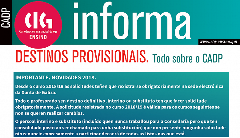 Tedes toda a información do "novo" CADP no seguinte CIG Informa