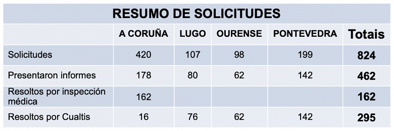 Posteriormente á reunión a administración remitiu un correo no que o único que destaca é o resumo das solicitudes presentadas polo persoal en risco e que se pode ver na seguinte táboa.