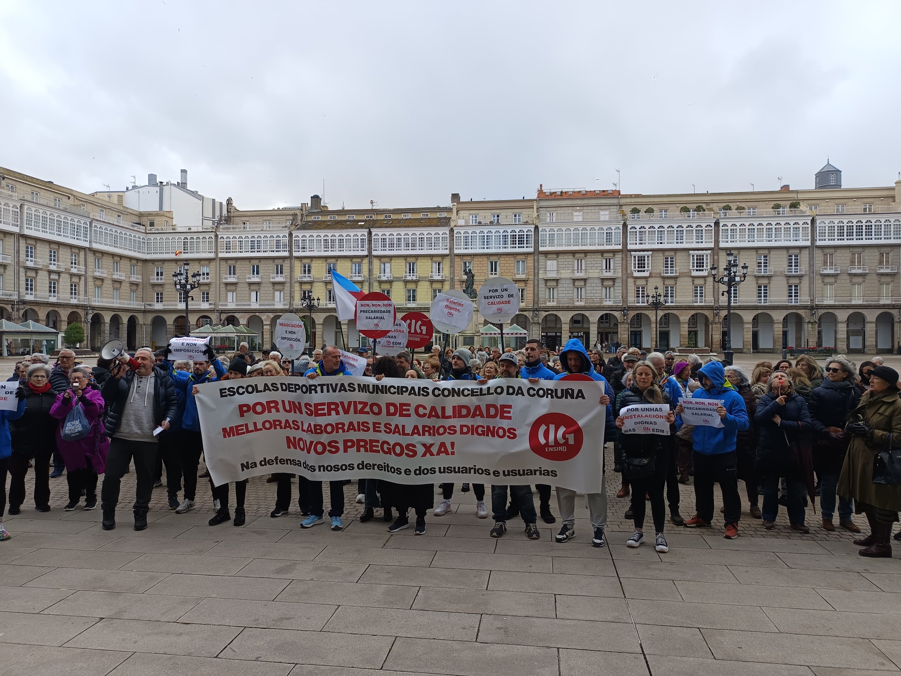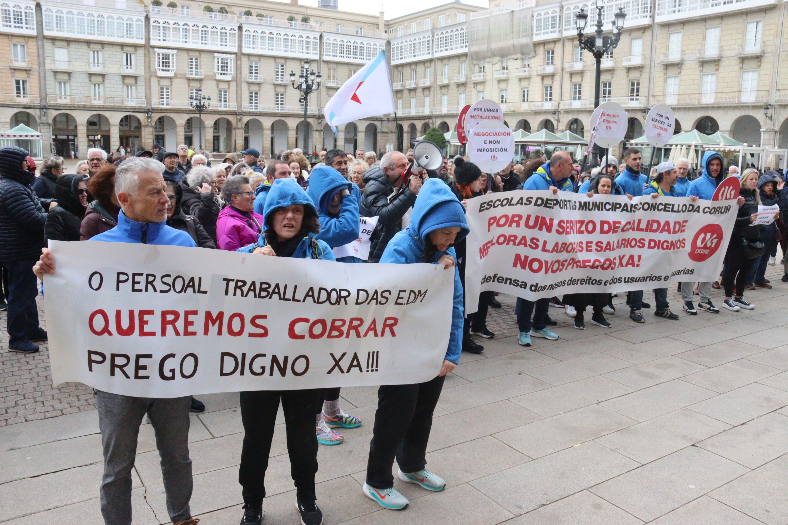 O 100% do persoal das escolas deportivas municipais da Coruña está secundando este xoves a primeira das catro xornadas de folga convocadas para reclamar o cobro inmediato dos salarios (teñen pendente de recibir a nómina de decembro e a paga extraordinaria) e reivindicar que os novos pregos de condicións recollan melloras nas condicións retributivas e laborais.