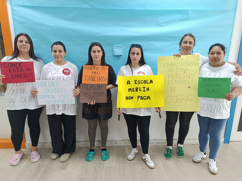 Durante a concentración que tivo lugar onte diante das instalacións da escola, a delegada sindical lembrou que levan máis de un ano sometidas a unha situación de incerteza insostíbel e intentando solventar os problemas coa dirección da empresa por todas as vías posíbeis. Ademais do que ten que ver cos impagamentos e atrasos, a xerencia está a incumprir moitas cuestións referidas á normativa como a de non ter unha mestra na escola ou non cubrir as baixas das traballadoras. Neste último ano, e sobre todo durante os máis de dous meses e medio que as traballadoras estiveron sen cobrar, seguiron demostrando a súa profesionalidade conscientes da enorme responsabilidade social que desempeñan.