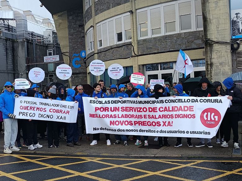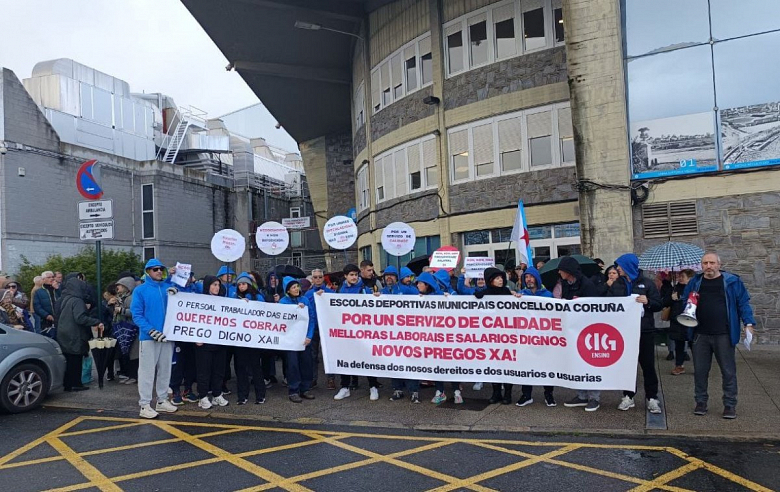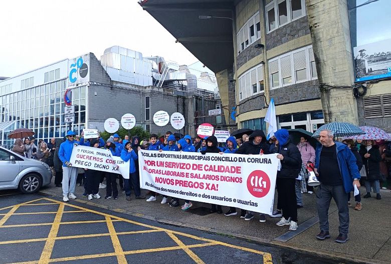 A totalidade do persoal das escolas deportivas municipais da Coruña está secundando a segunda xornada de folga para reclamar o cobro inmediato dos seus salarios e que os novos pregos contemplen avances reais nos dereitos, tal e como no seu día se comprometeu o Goberno local.